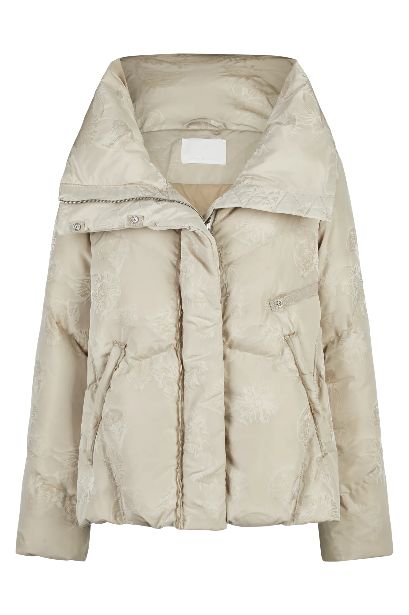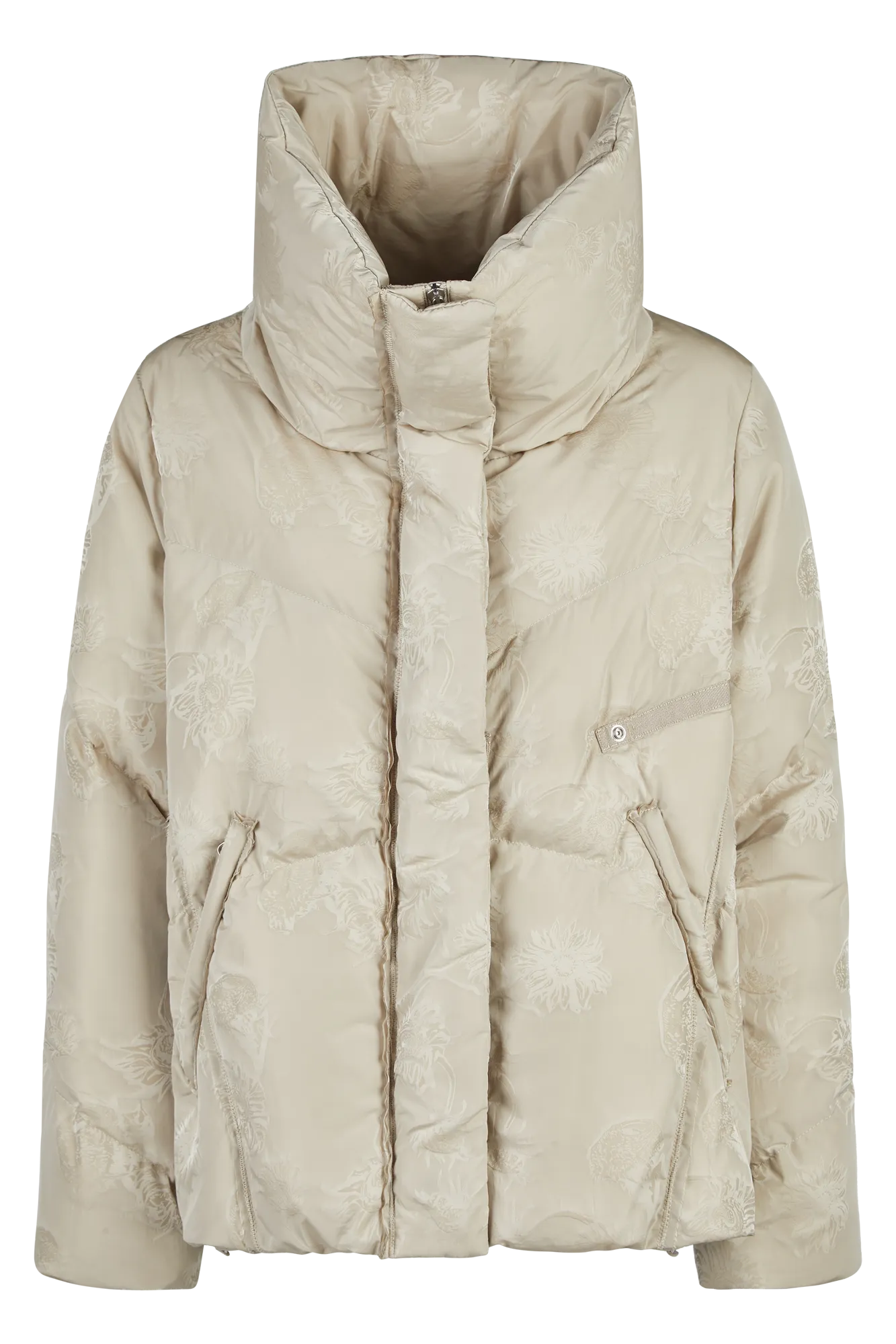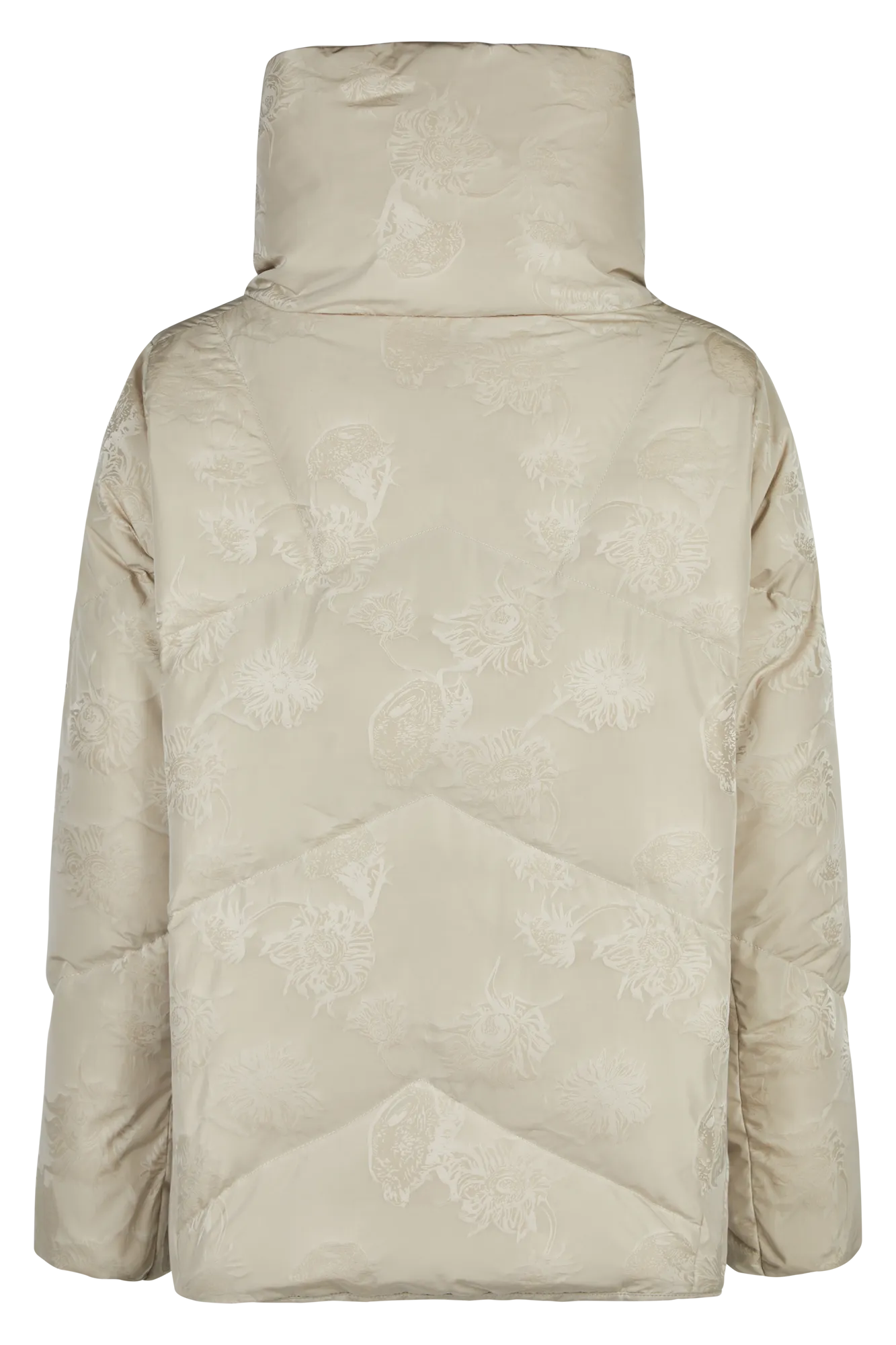 Leichte, voluminöse Daunenjacke aus floralem Jacquard.
