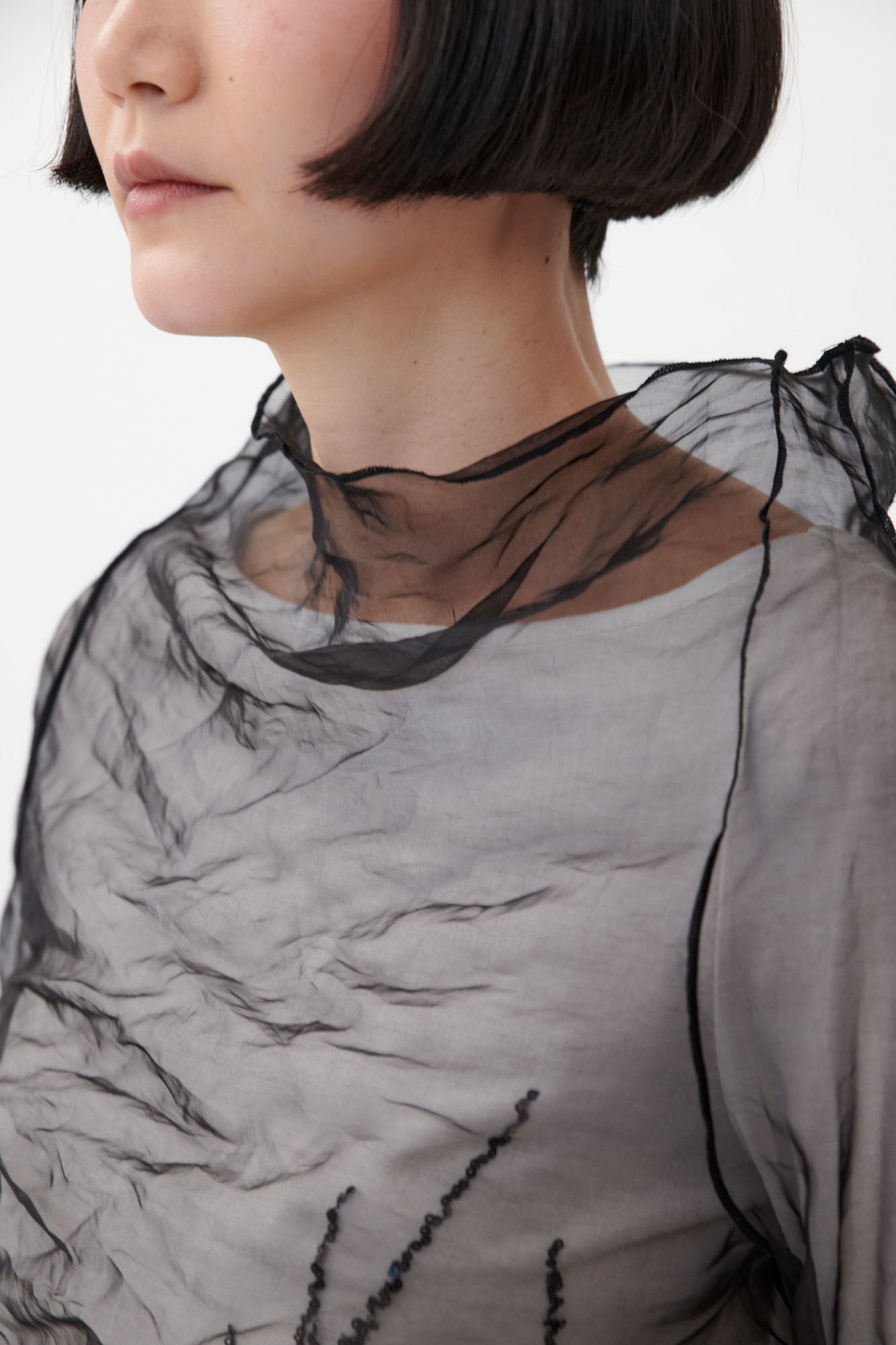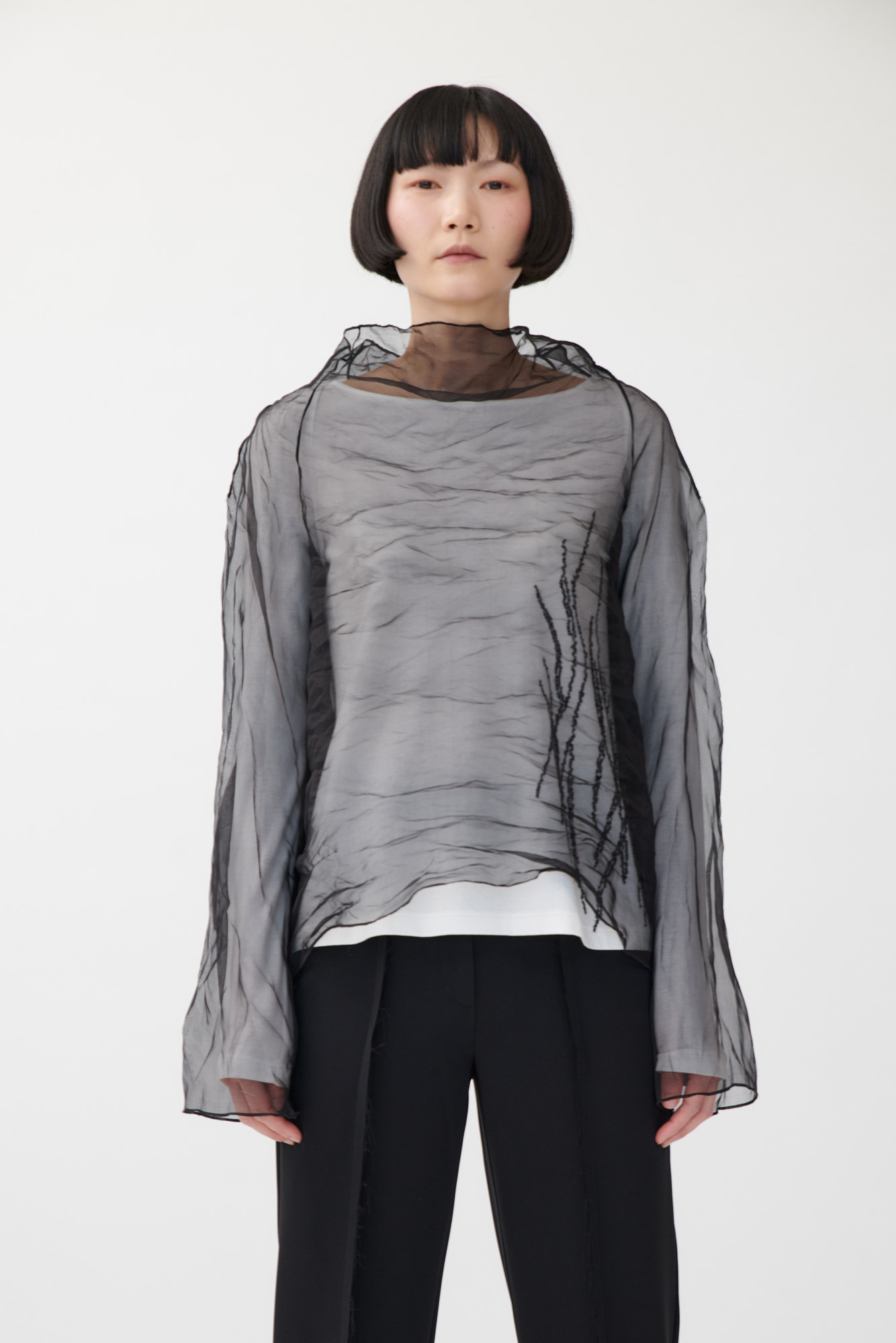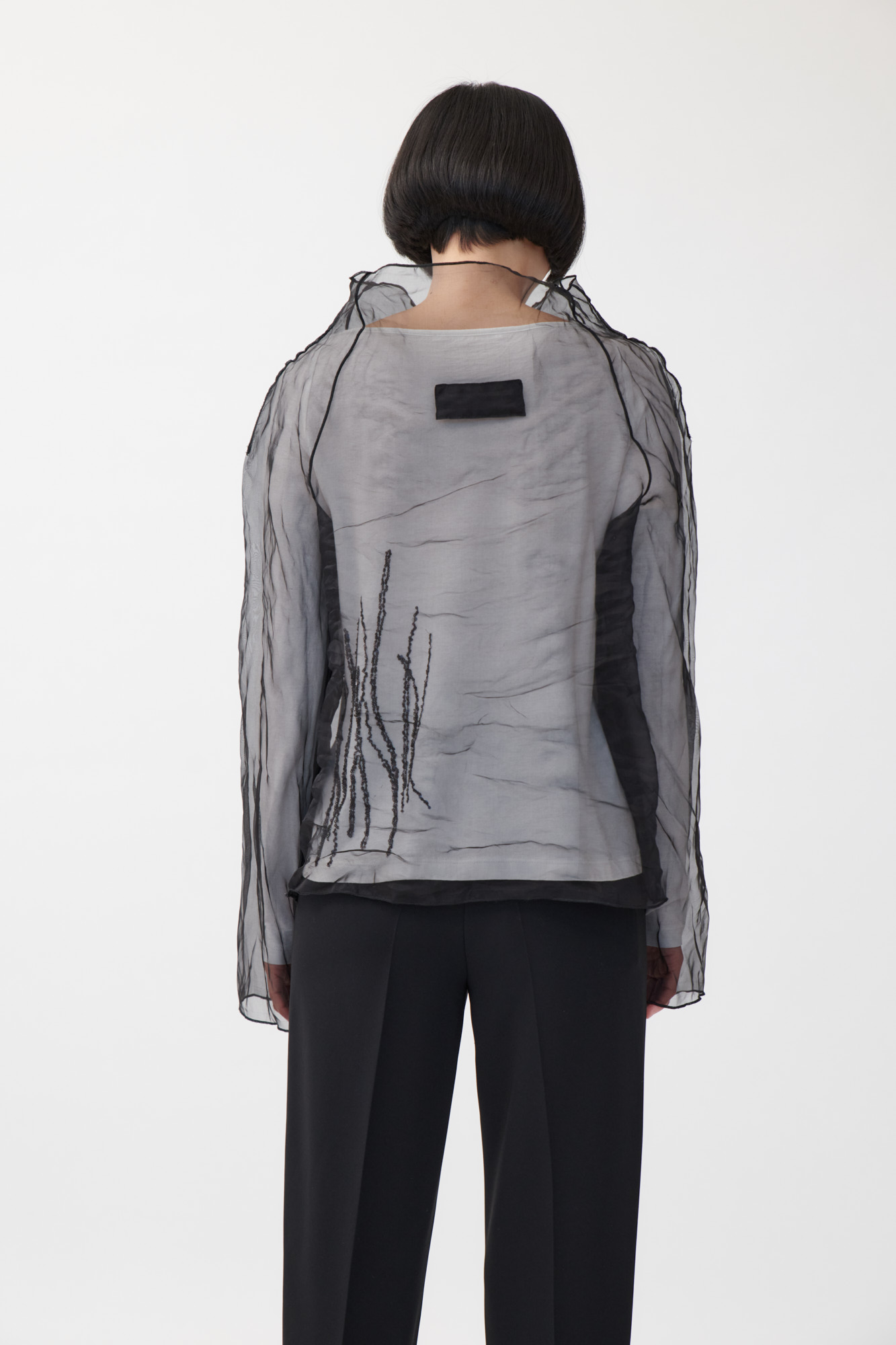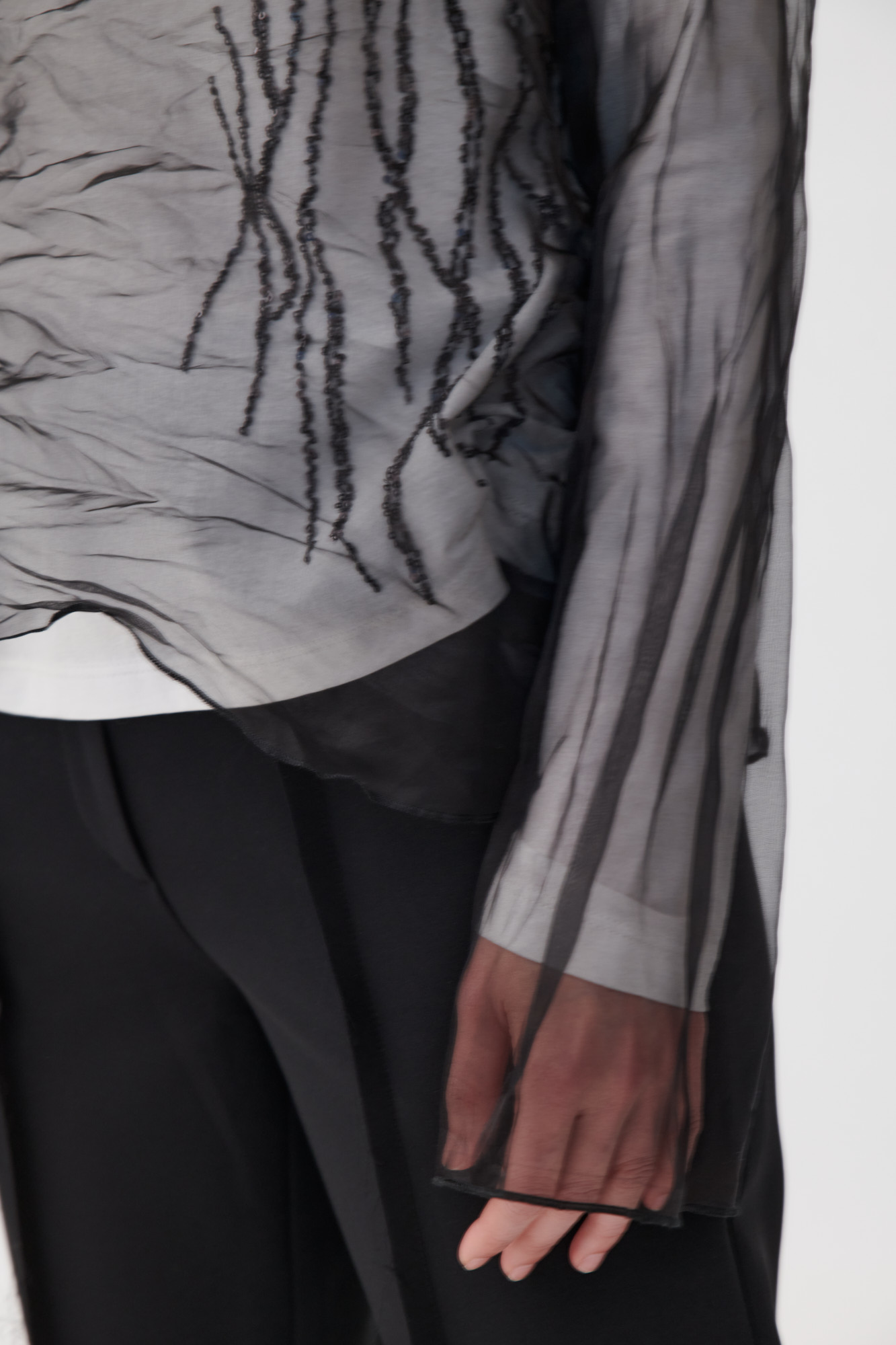 • Semitransparenter Seidenorganza mit geknittertem Finish