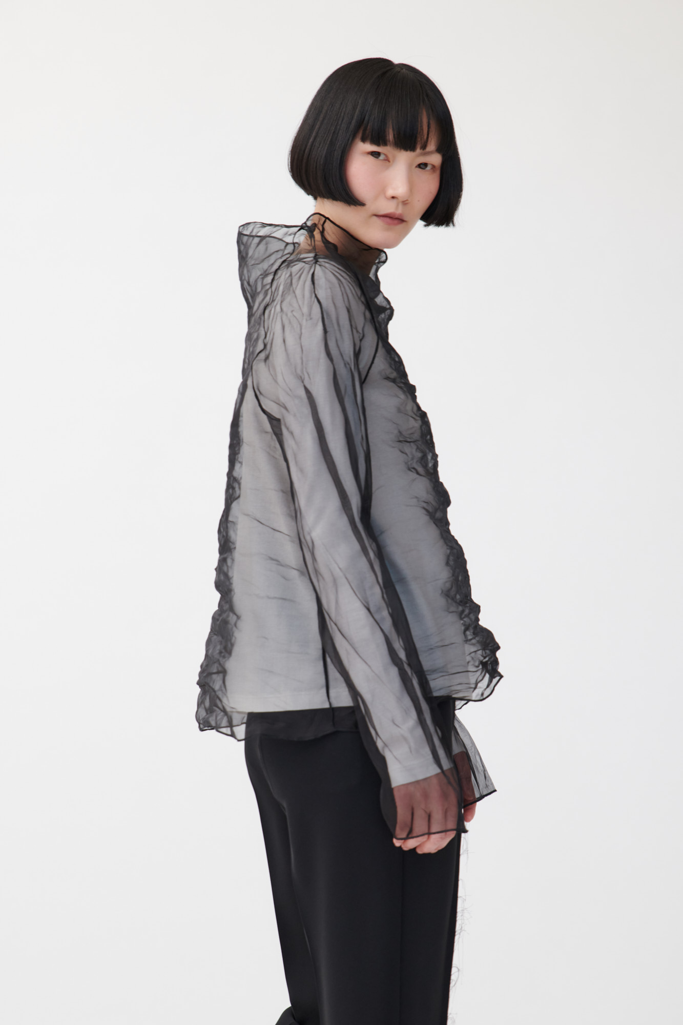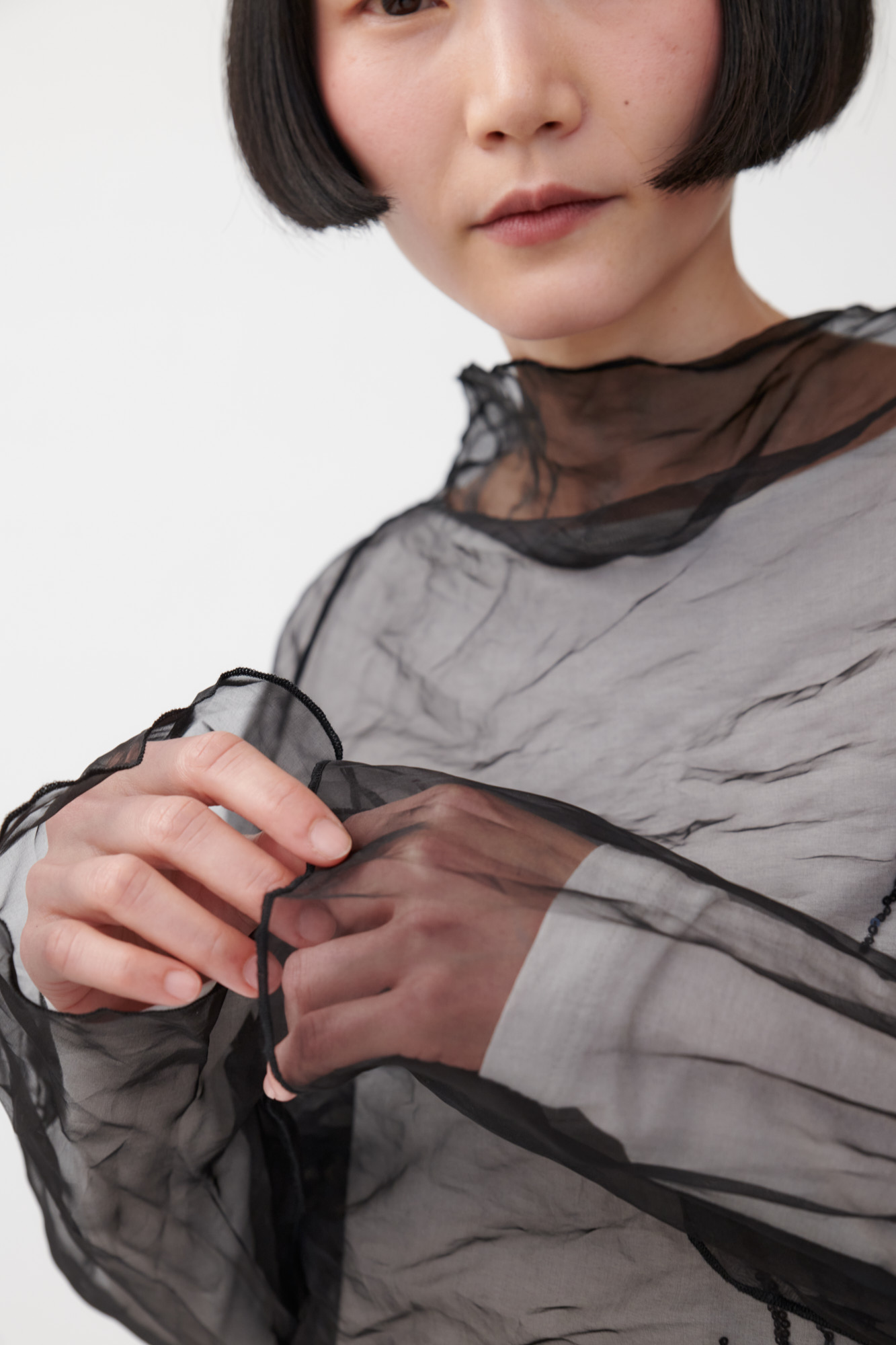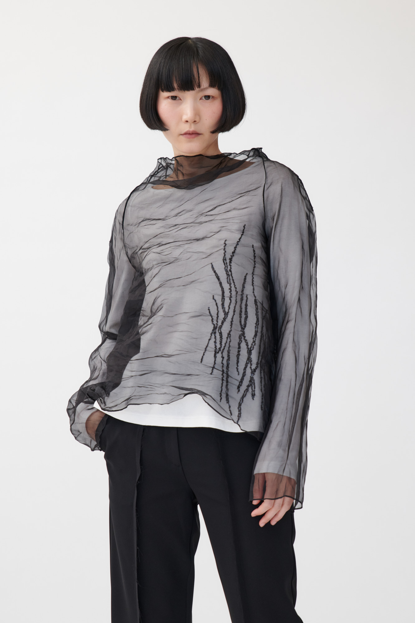 • Semitransparenter Seidenorganza mit geknittertem Finish