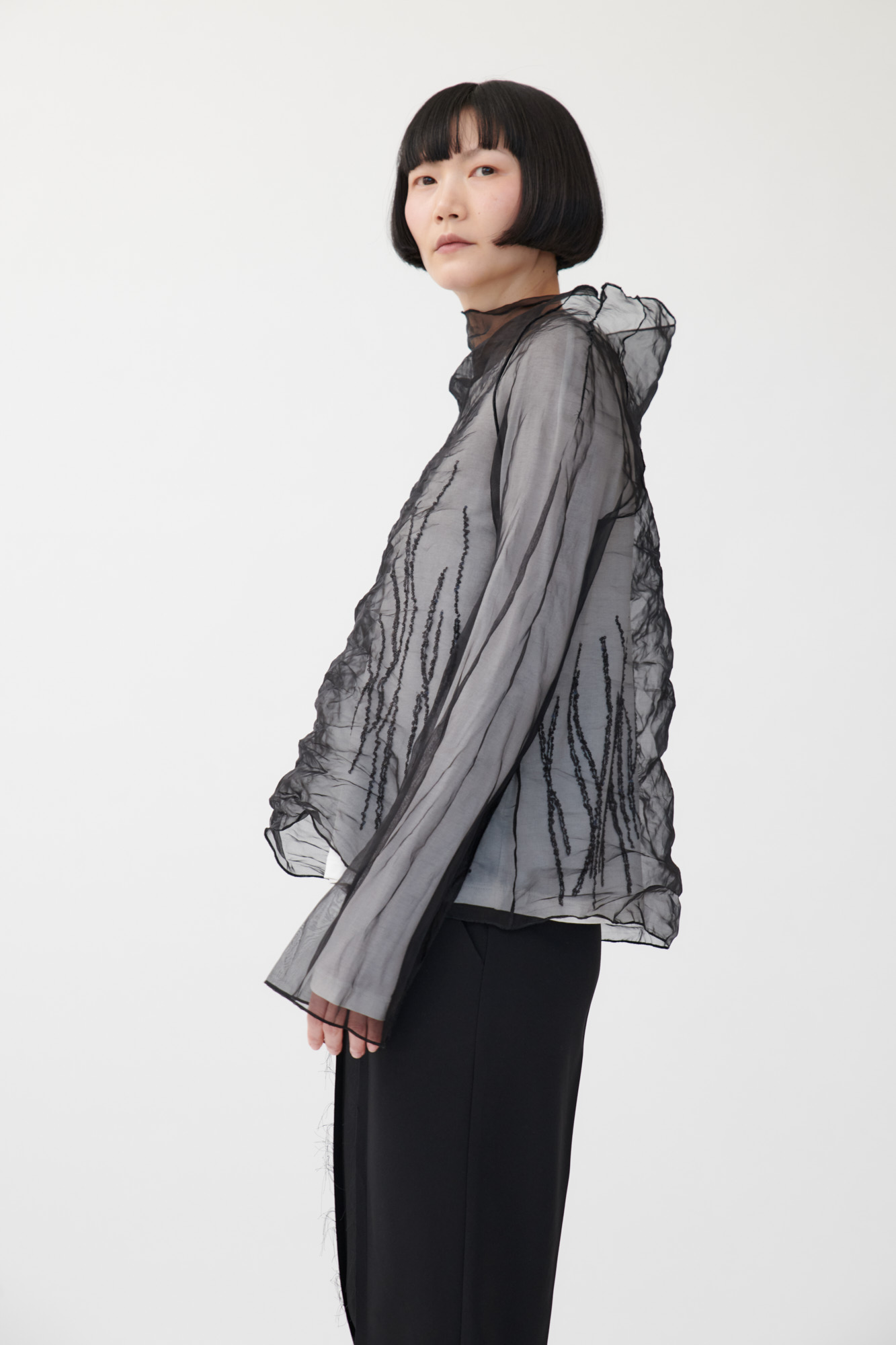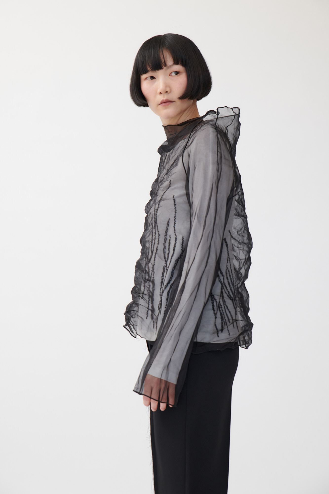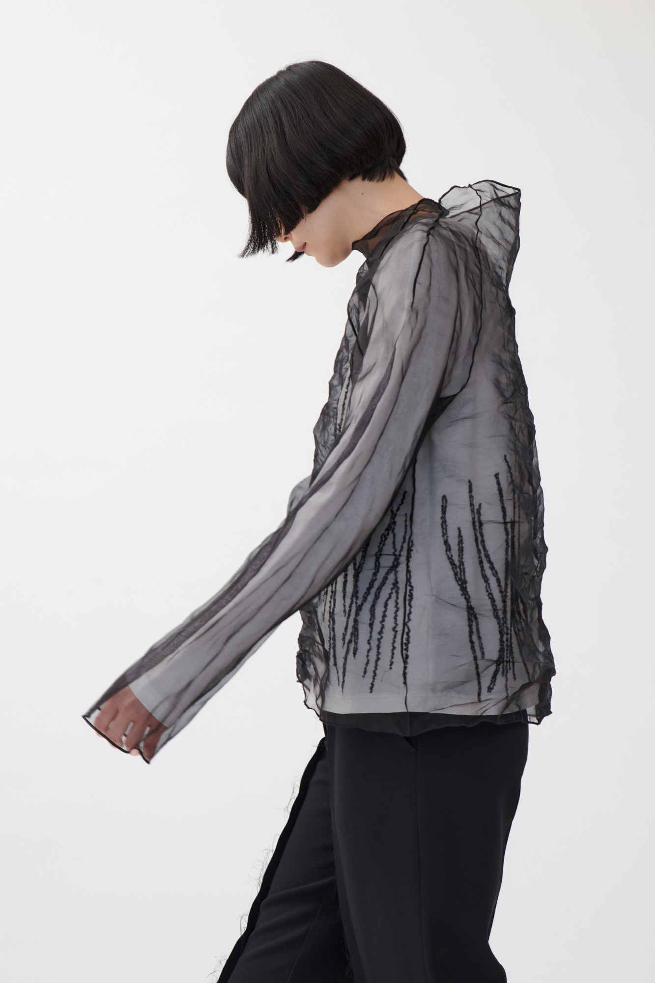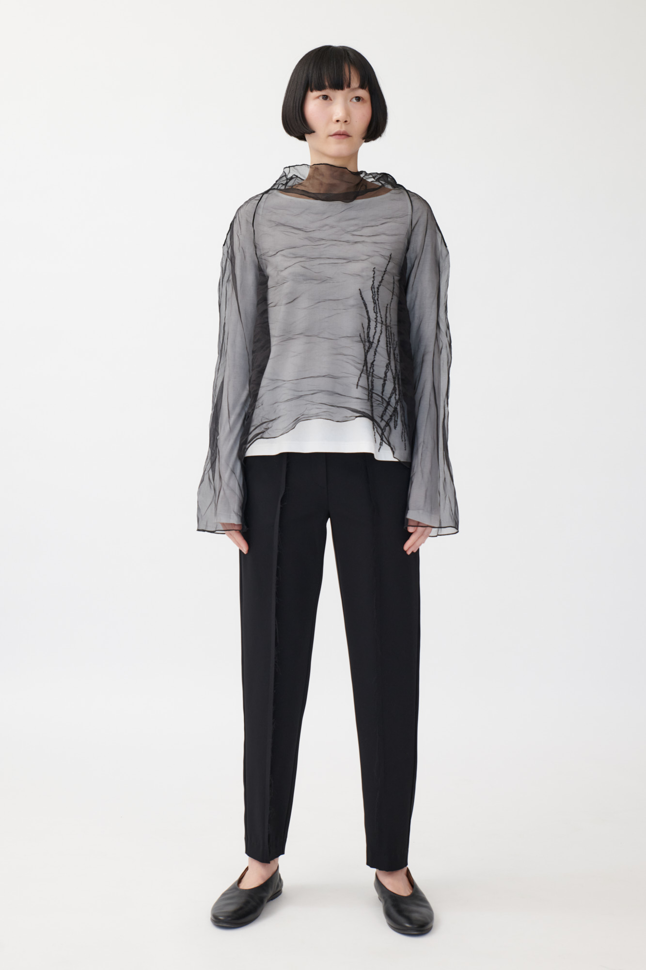 • Semitransparenter Seidenorganza mit geknittertem Finish