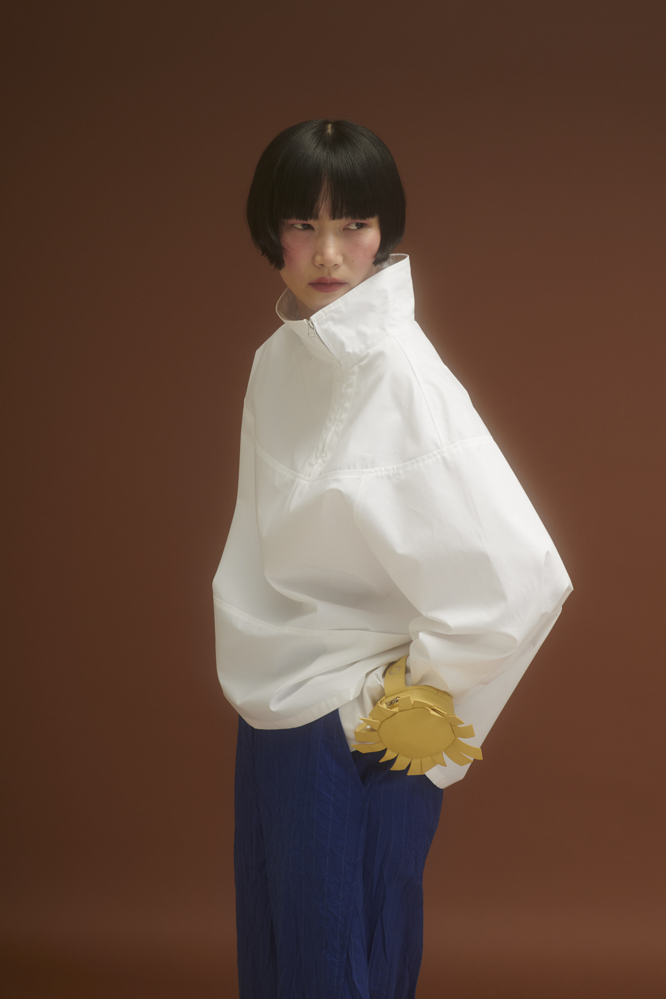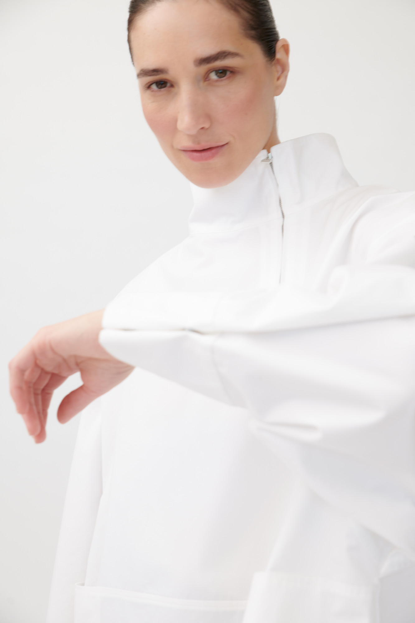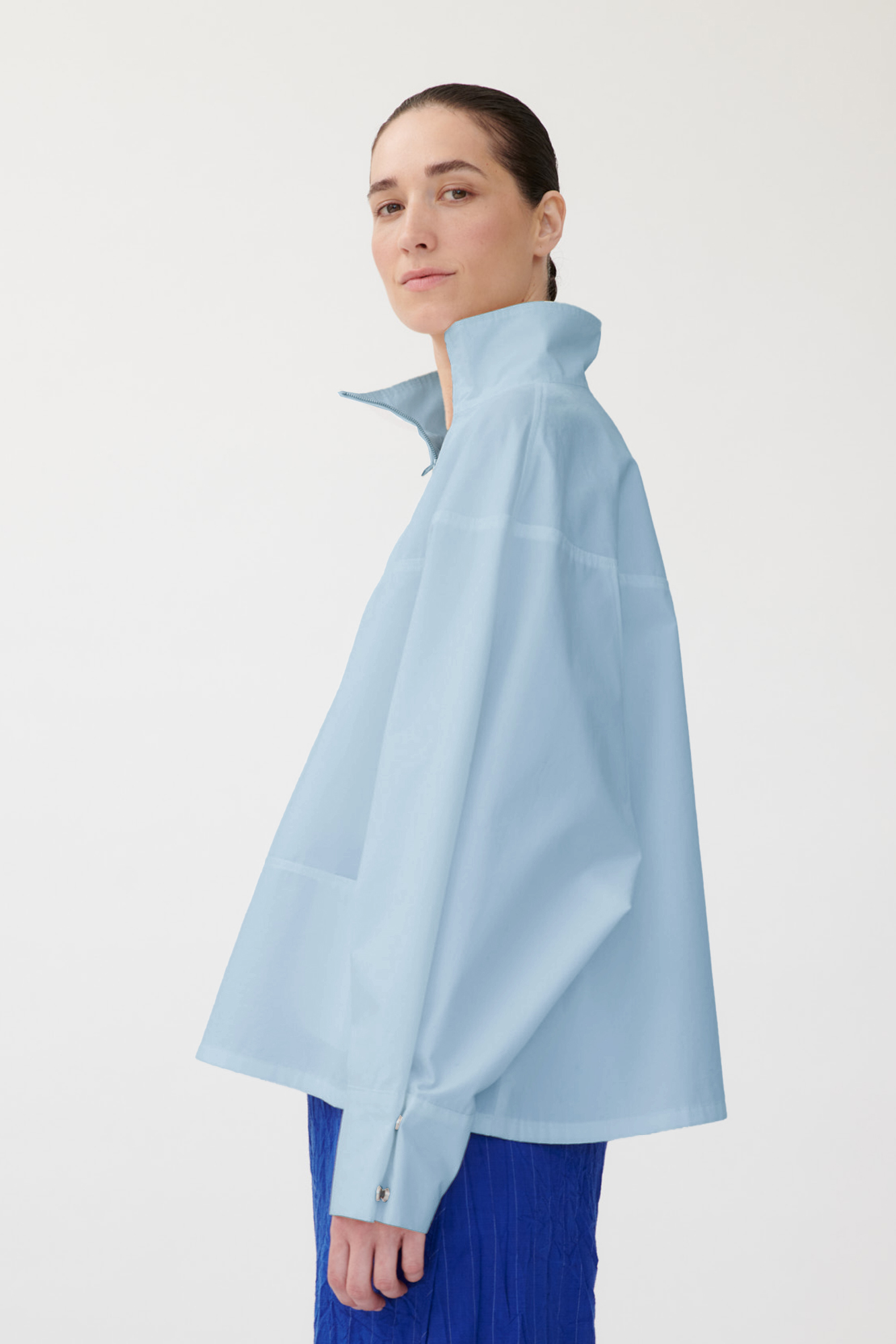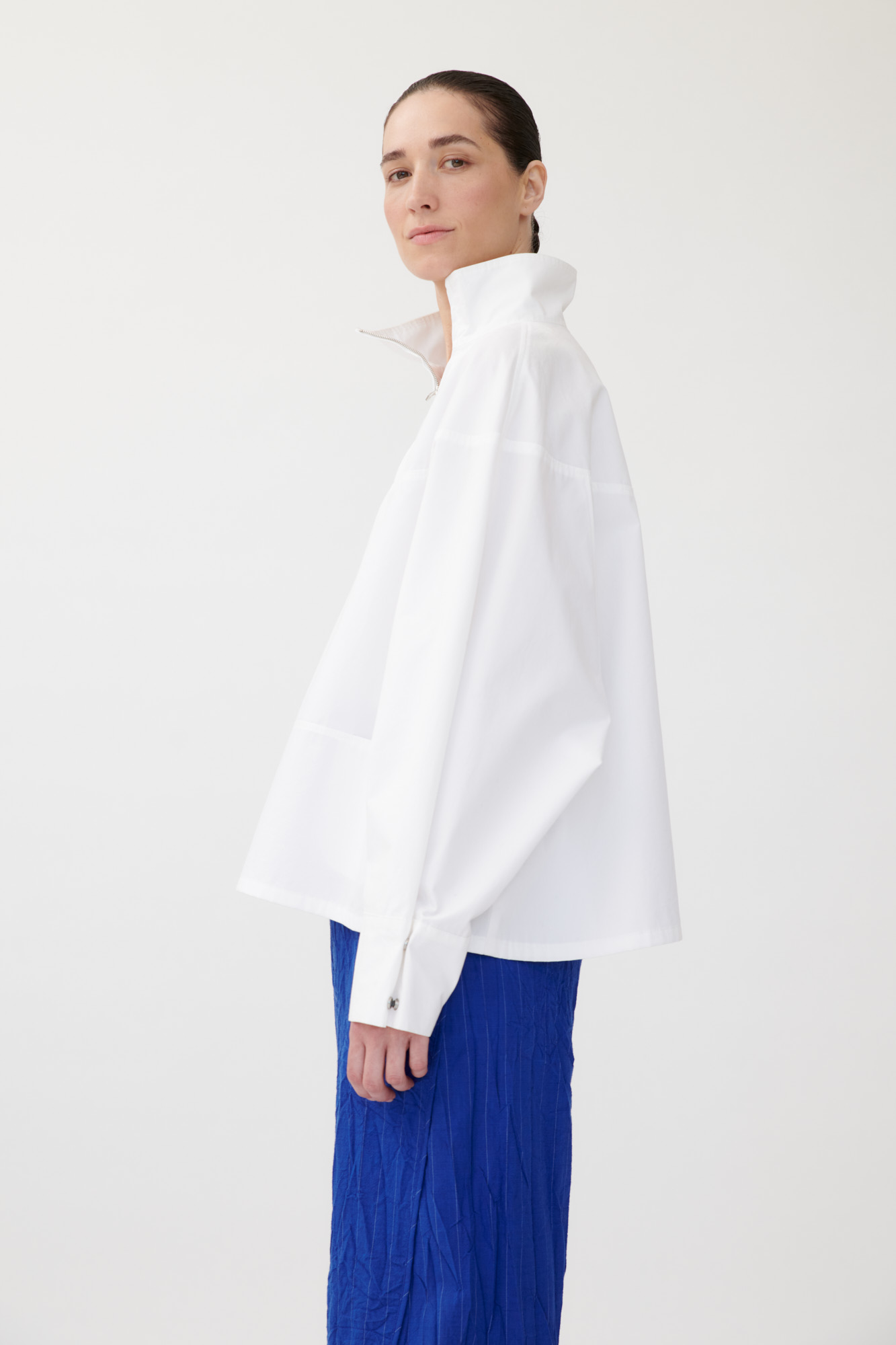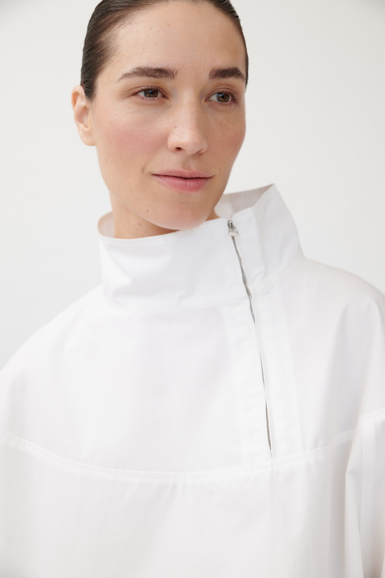 • Stehkragen mit seitlichem Reißverschluss