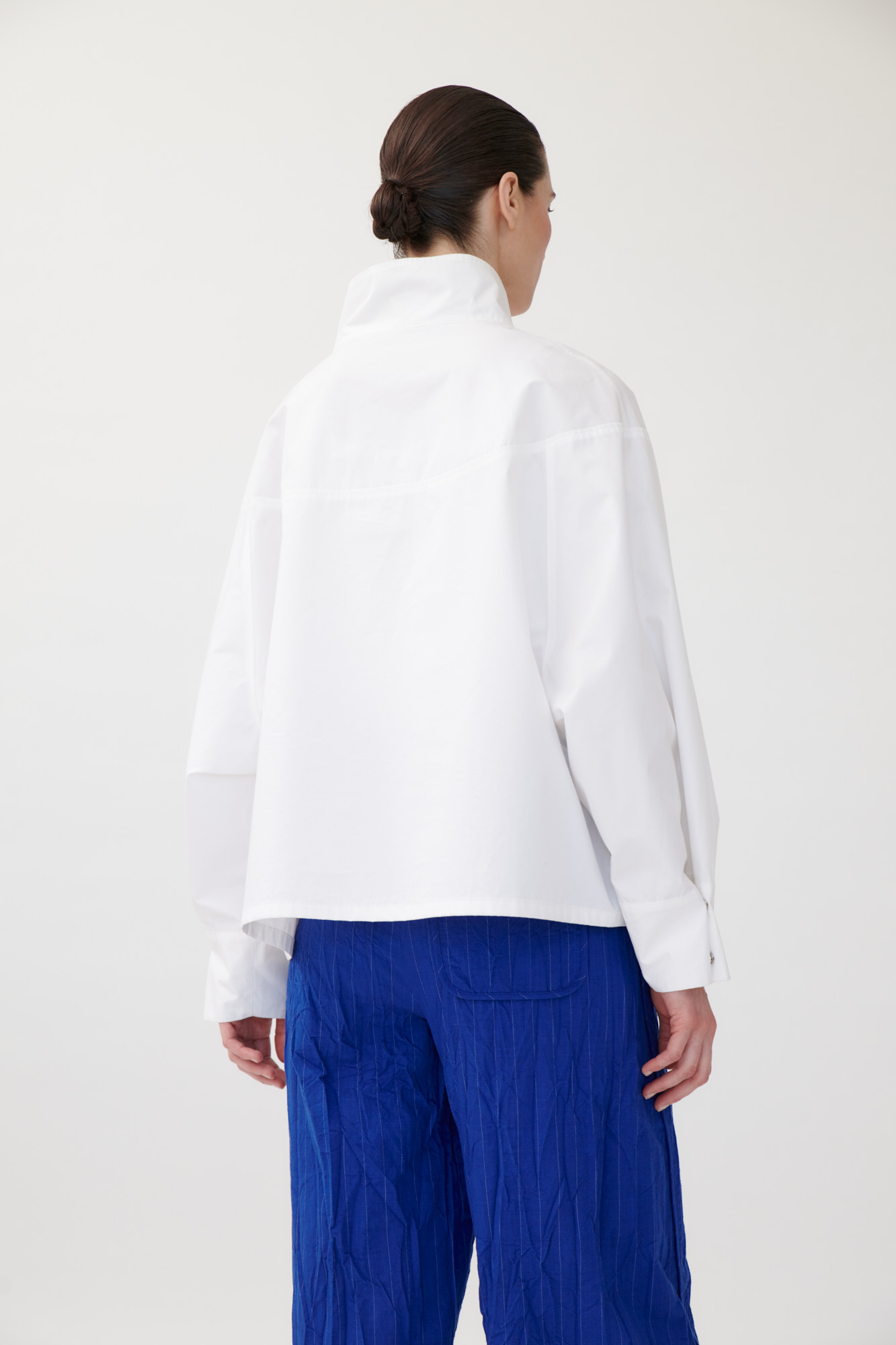 Weite Bluse mit grafischer Linienführung inspiriert von einer Künstler Robe. • Stehkragen mit... mehr