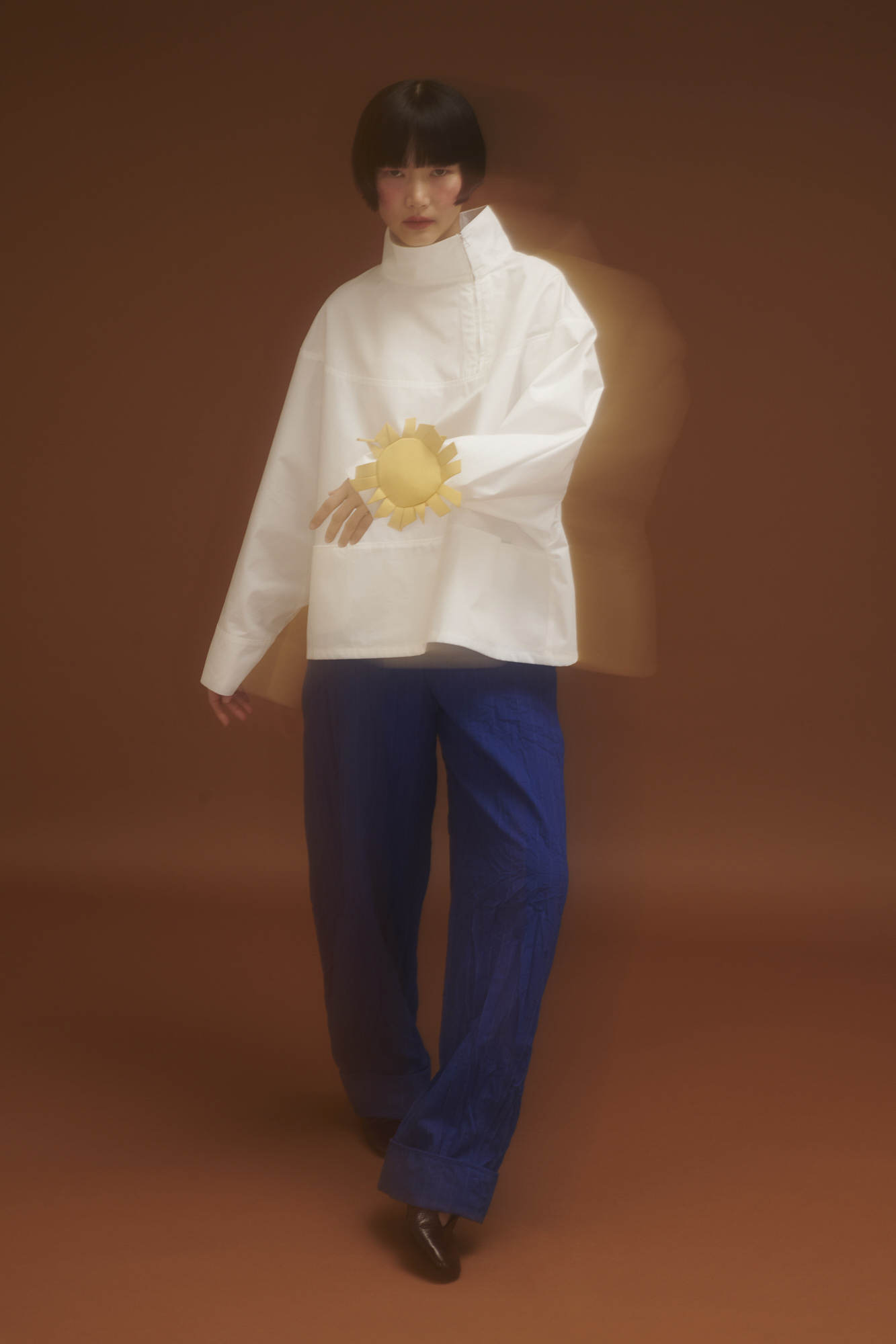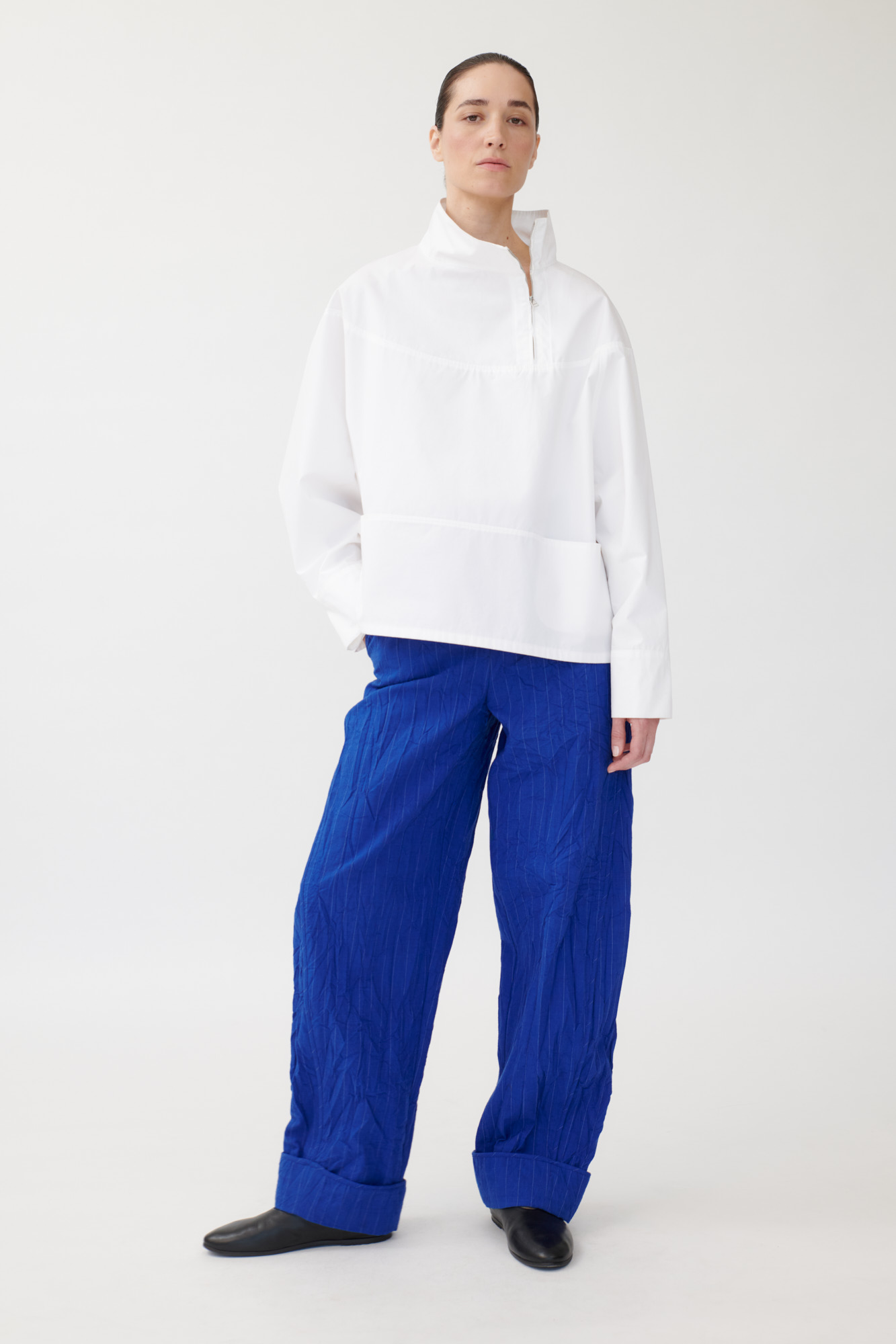 Weite Bluse mit grafischer Linienführung inspiriert von einer Künstler Robe.