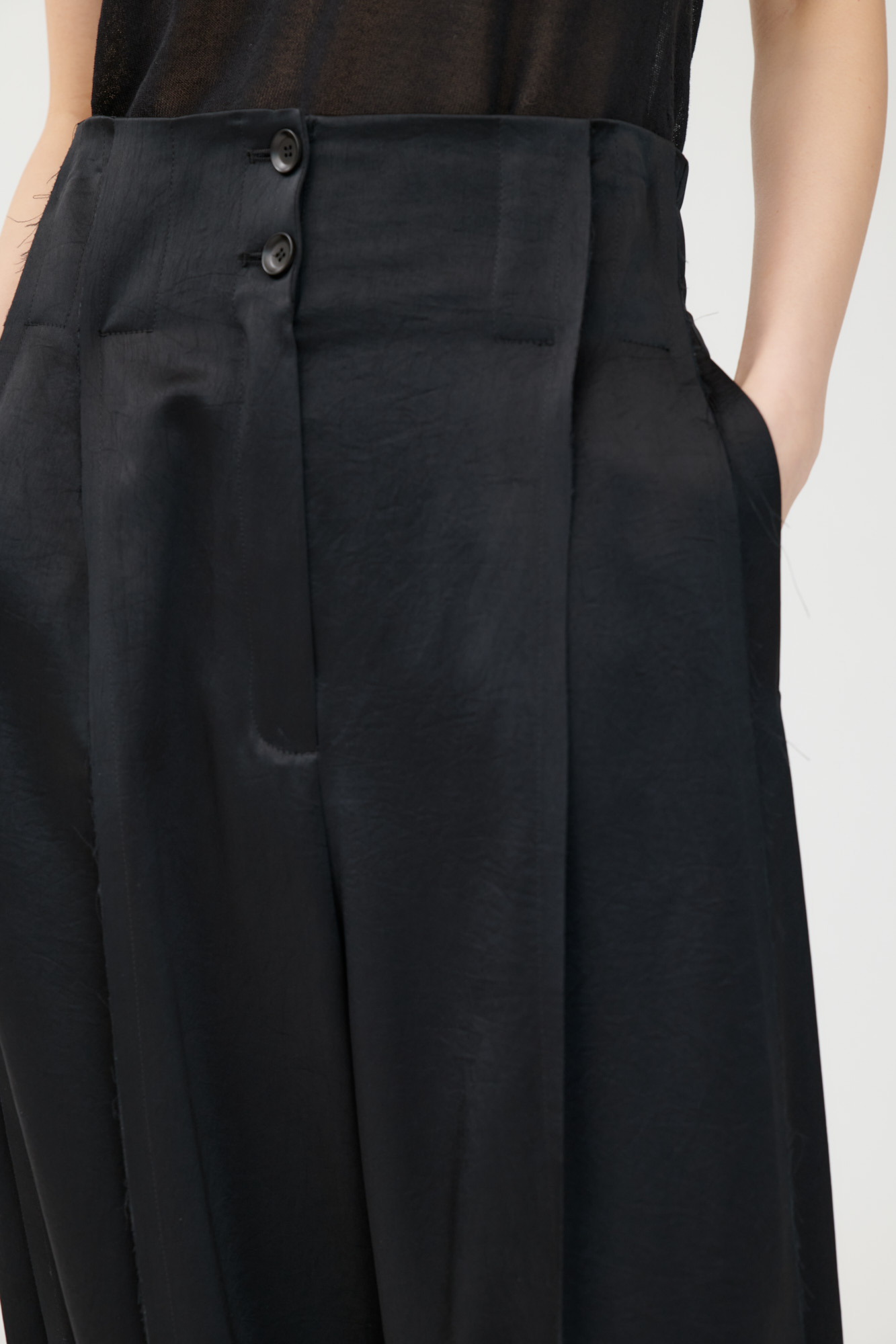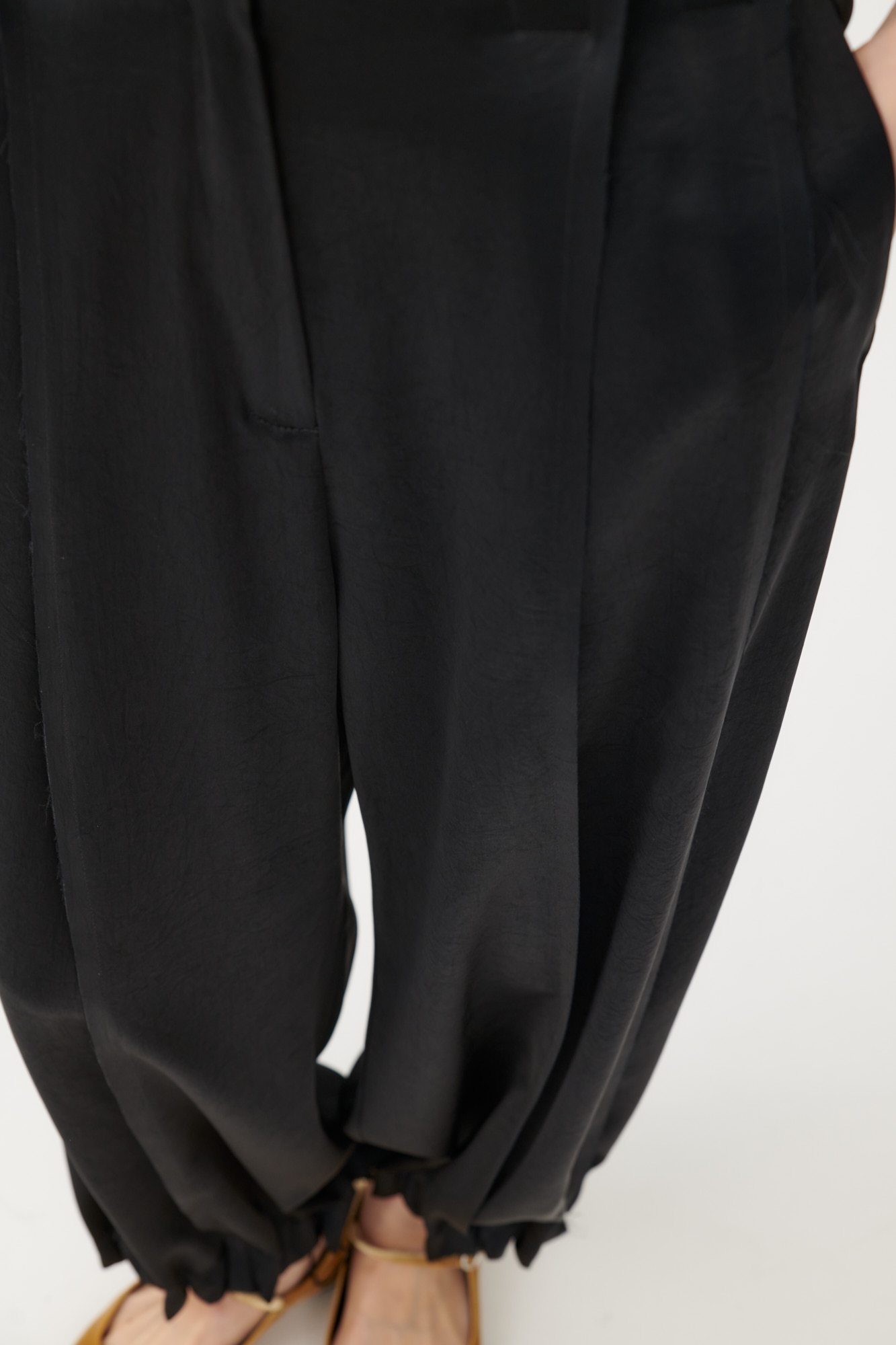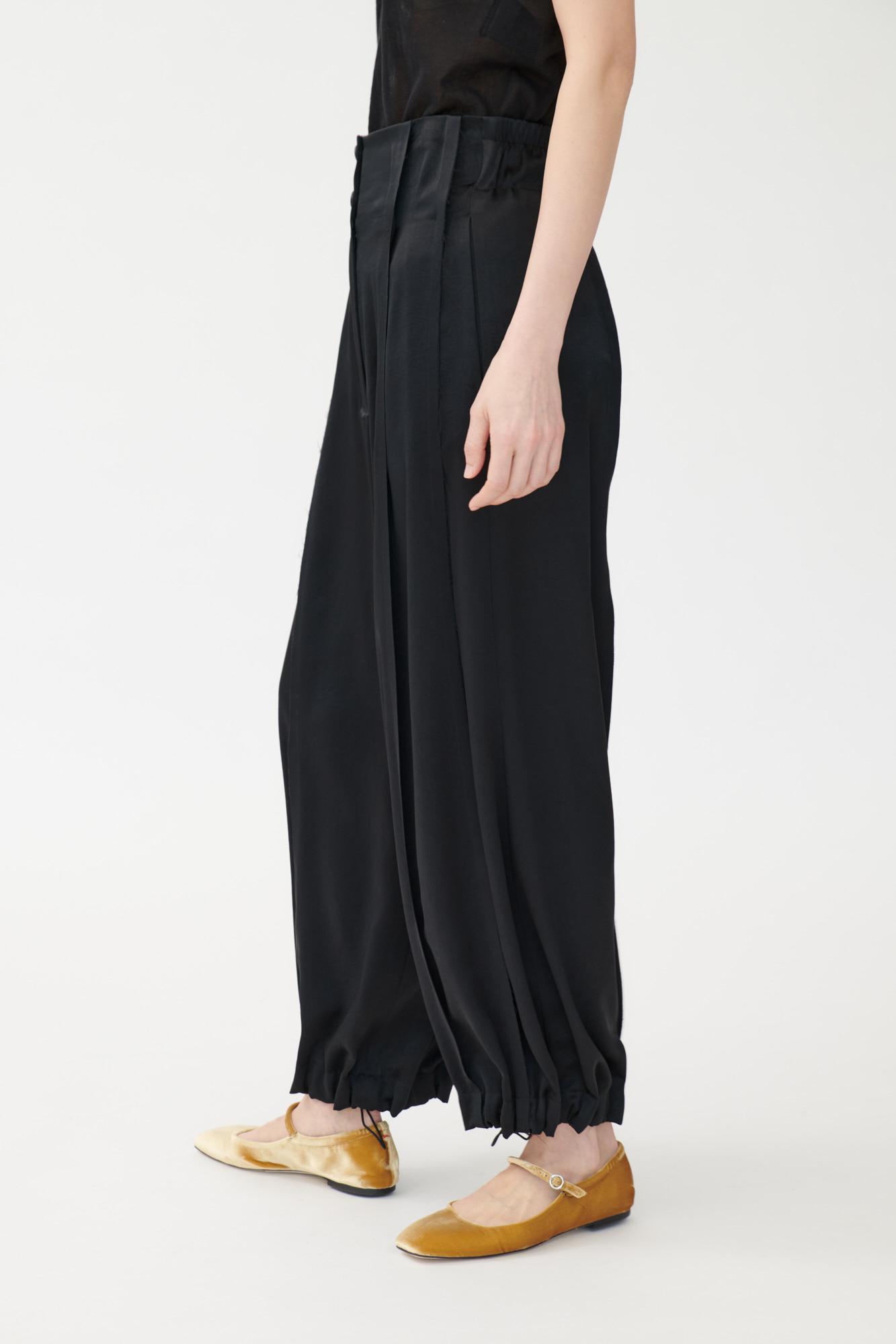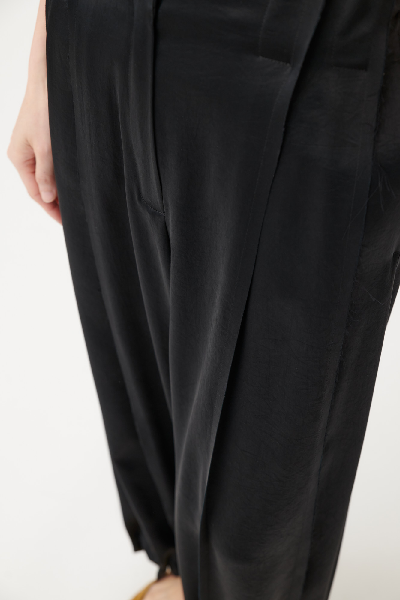 Weite Hose mit Falten aus japanischem Triacetat mit offenkantiger Verarbeitung und leichtem Glanz.