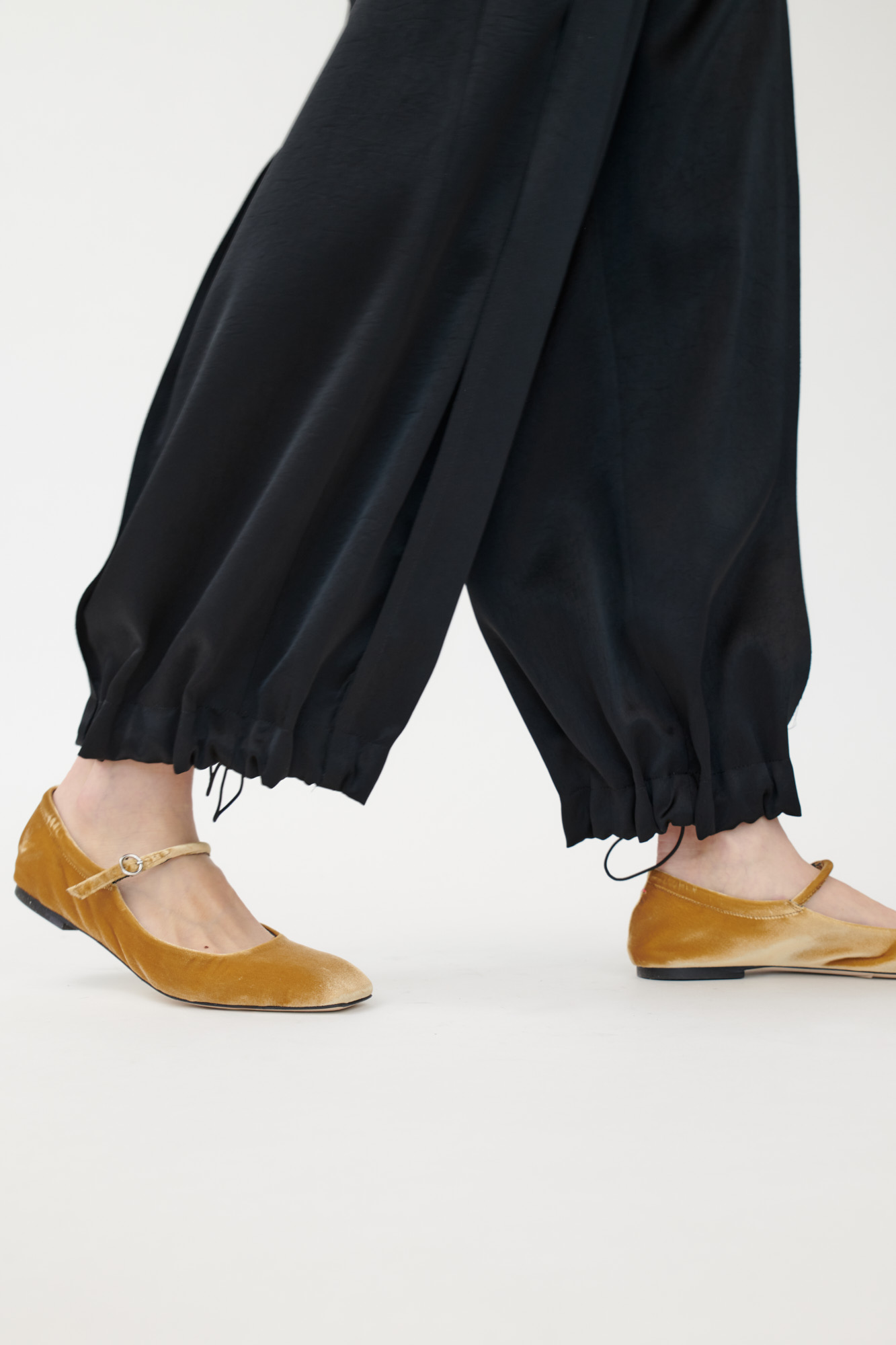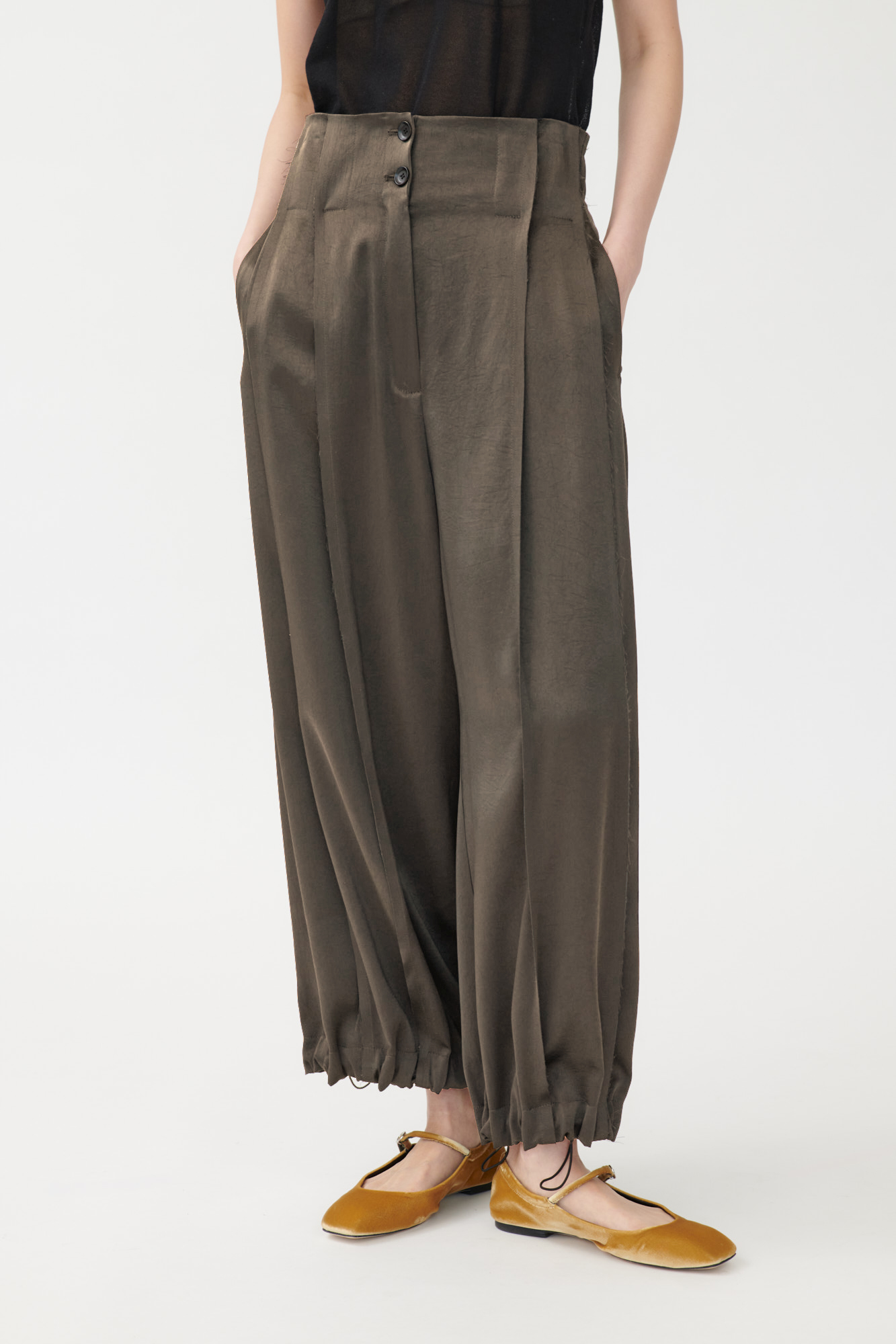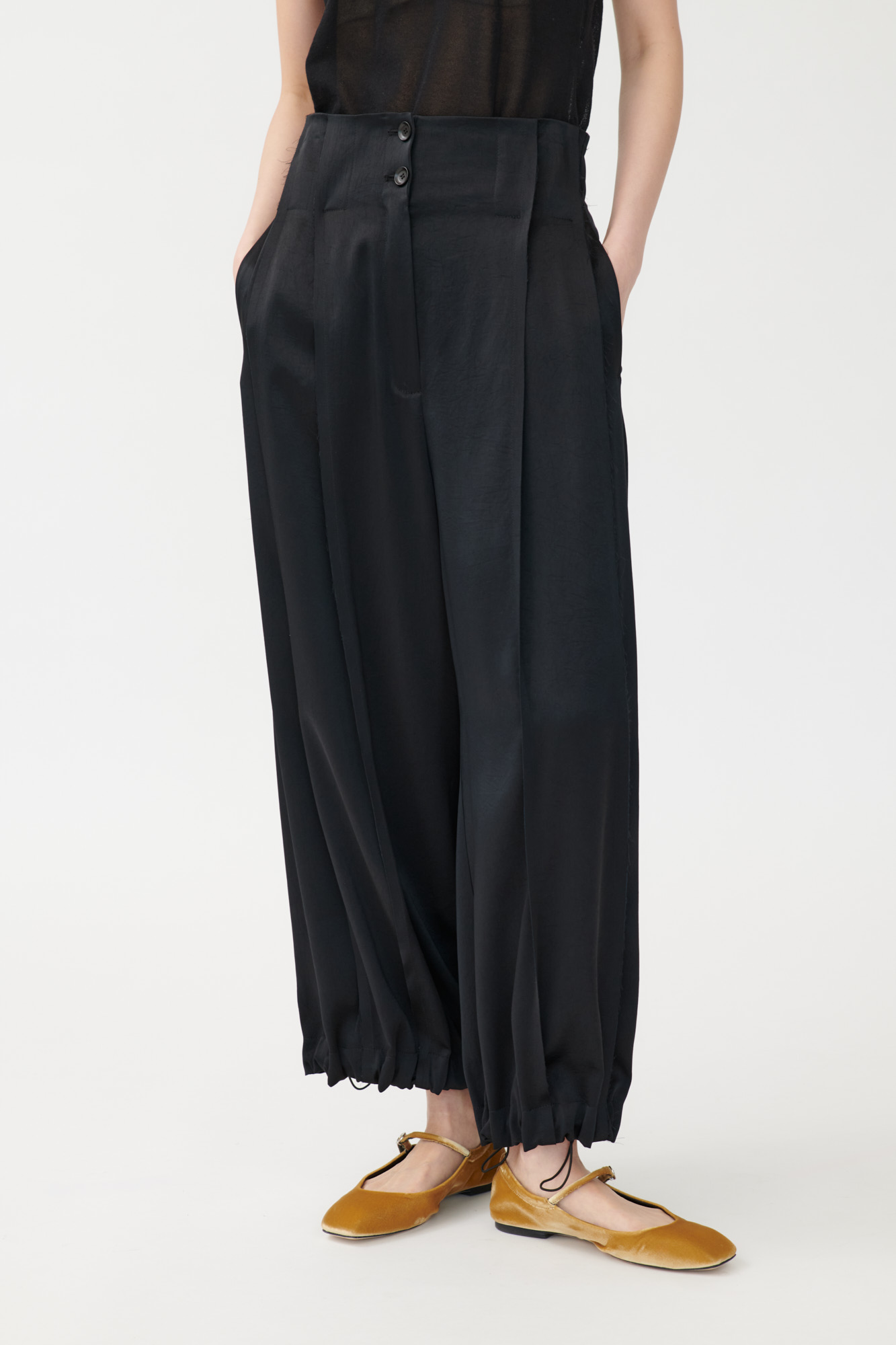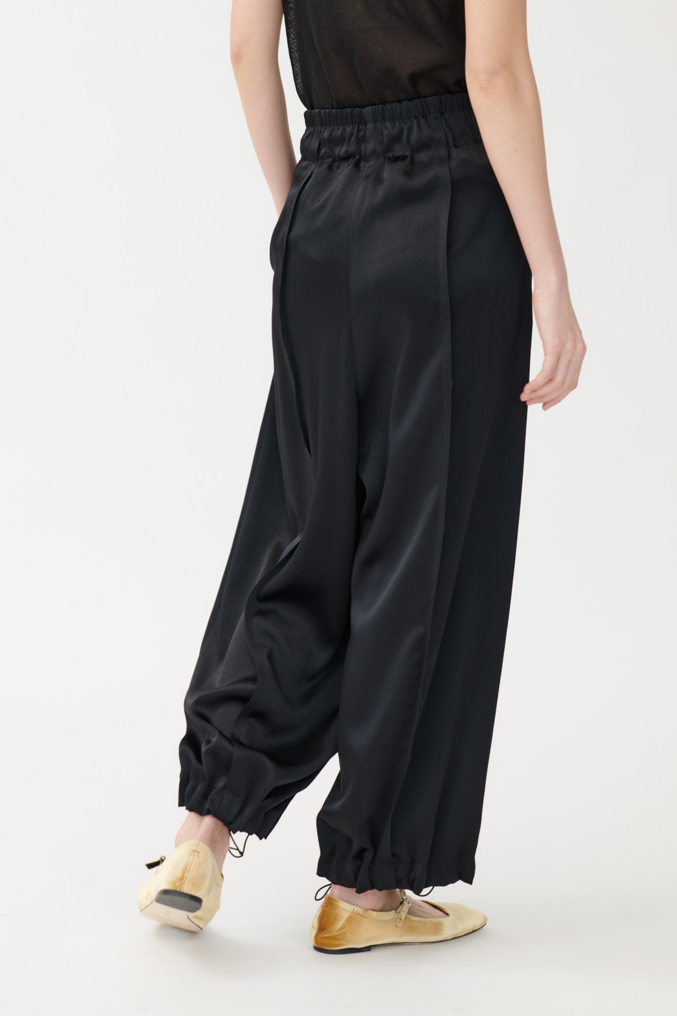 Weite Hose mit Falten aus japanischem Triacetat mit offenkantiger Verarbeitung und leichtem Glanz.