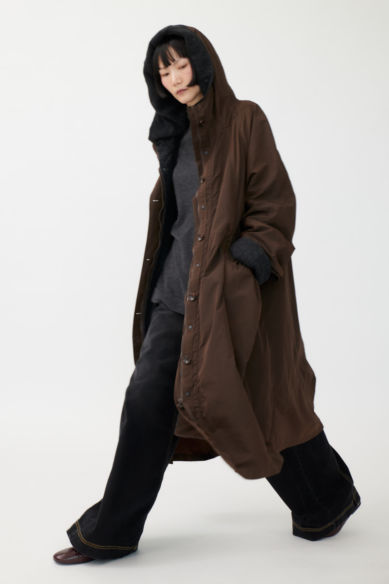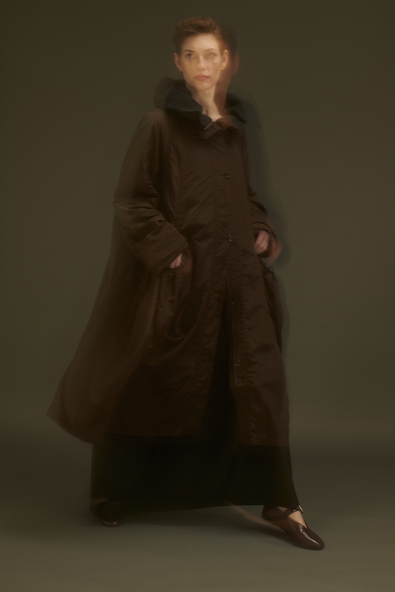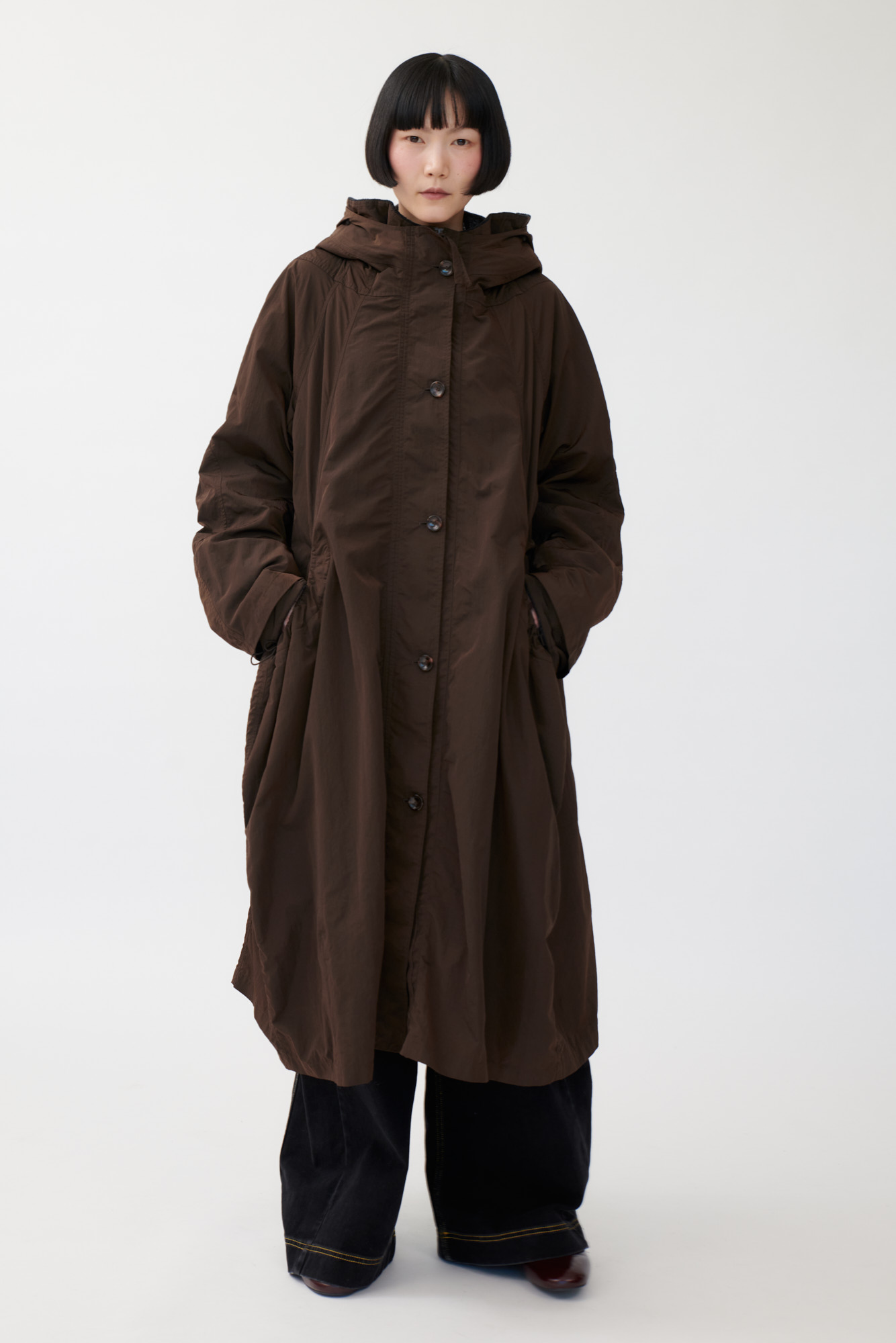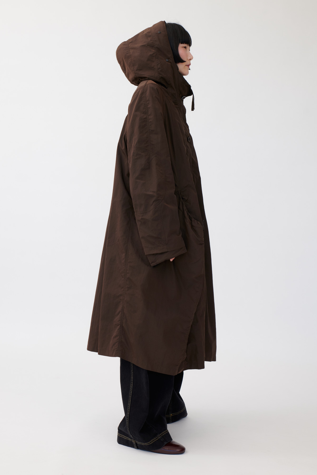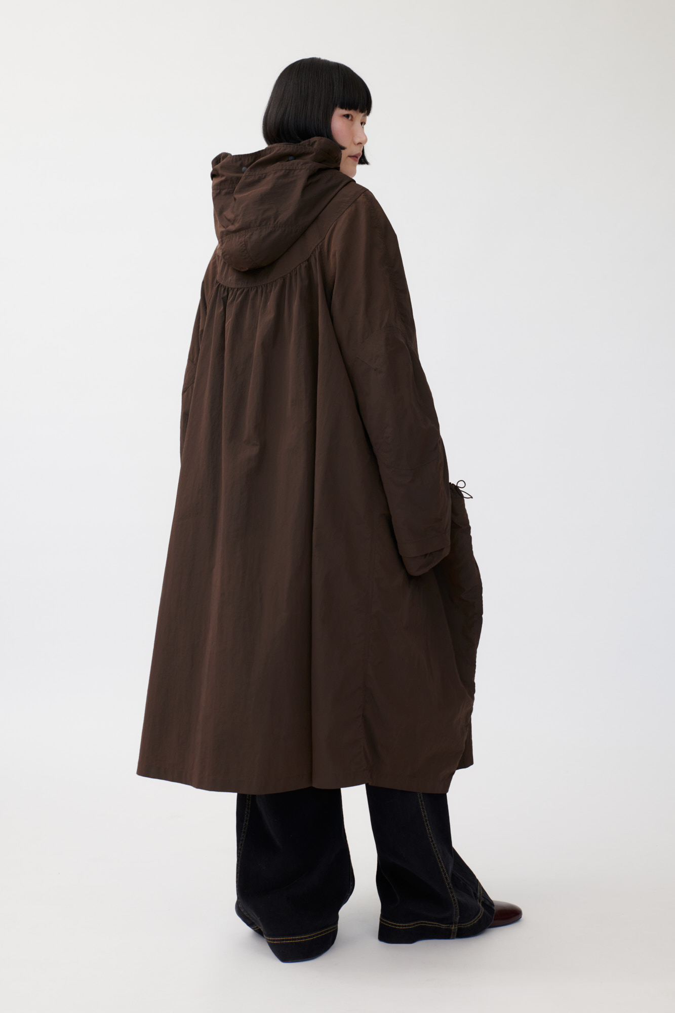 • Leichtes Nylonmaterial aus recycelten Fasern mit seidenem Glanz im gewaschenen Look