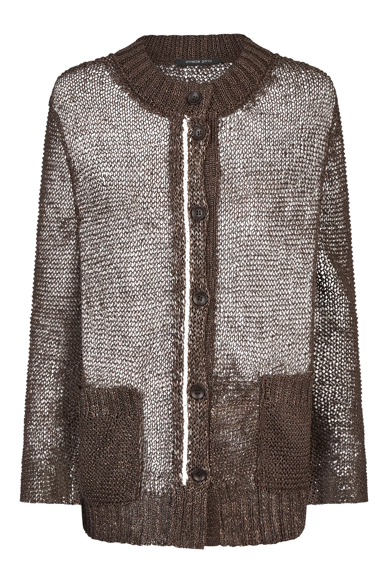 Transparente Oversized-Strickjacke mit aufgesetzten Taschen