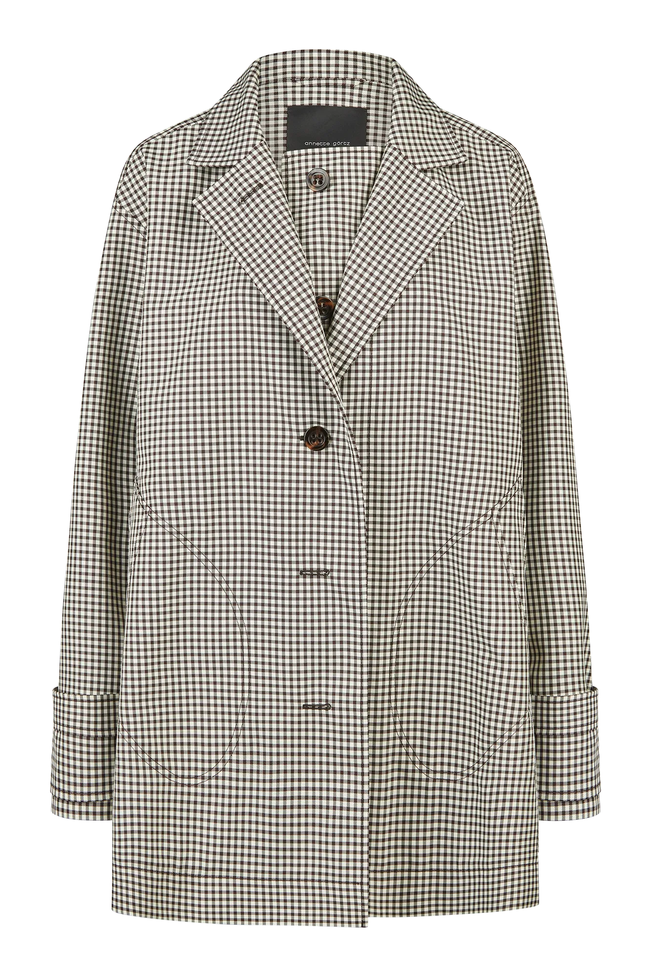 • Verdeckte Knopfleiste mit einseitig doppeltem Revers