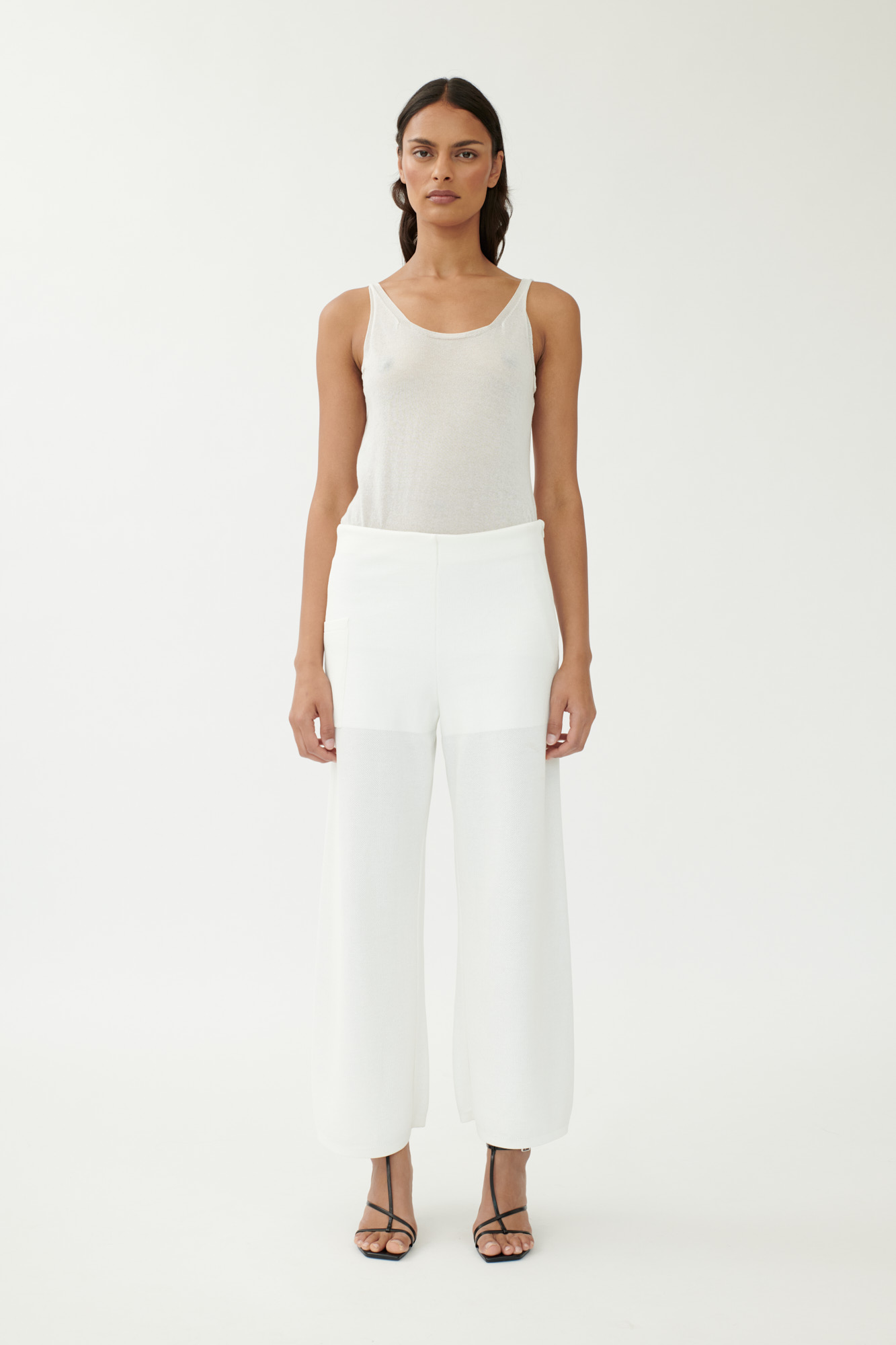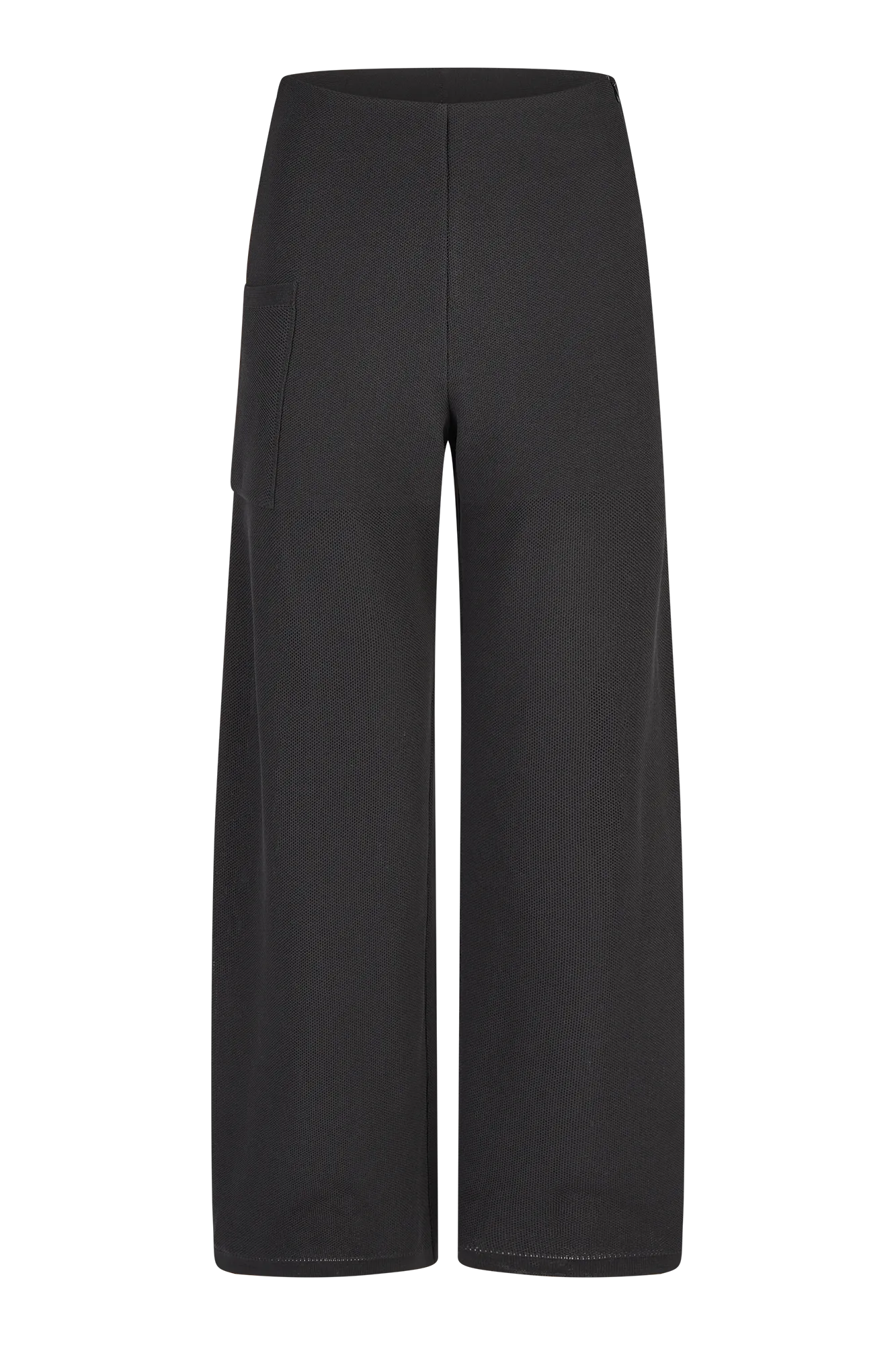 Nahtlos gestrickte Hose aus reiner Baumwolle mit sportlichem Charakter. Die Kombination aus blickdichtem Piqué-Strick und leicht transparentem Beinverlauf verleiht dem Design Tiefe. Eine aufgesetzte Tasche und der seitliche Reißverschluss ergänzen die klare Silhouette.