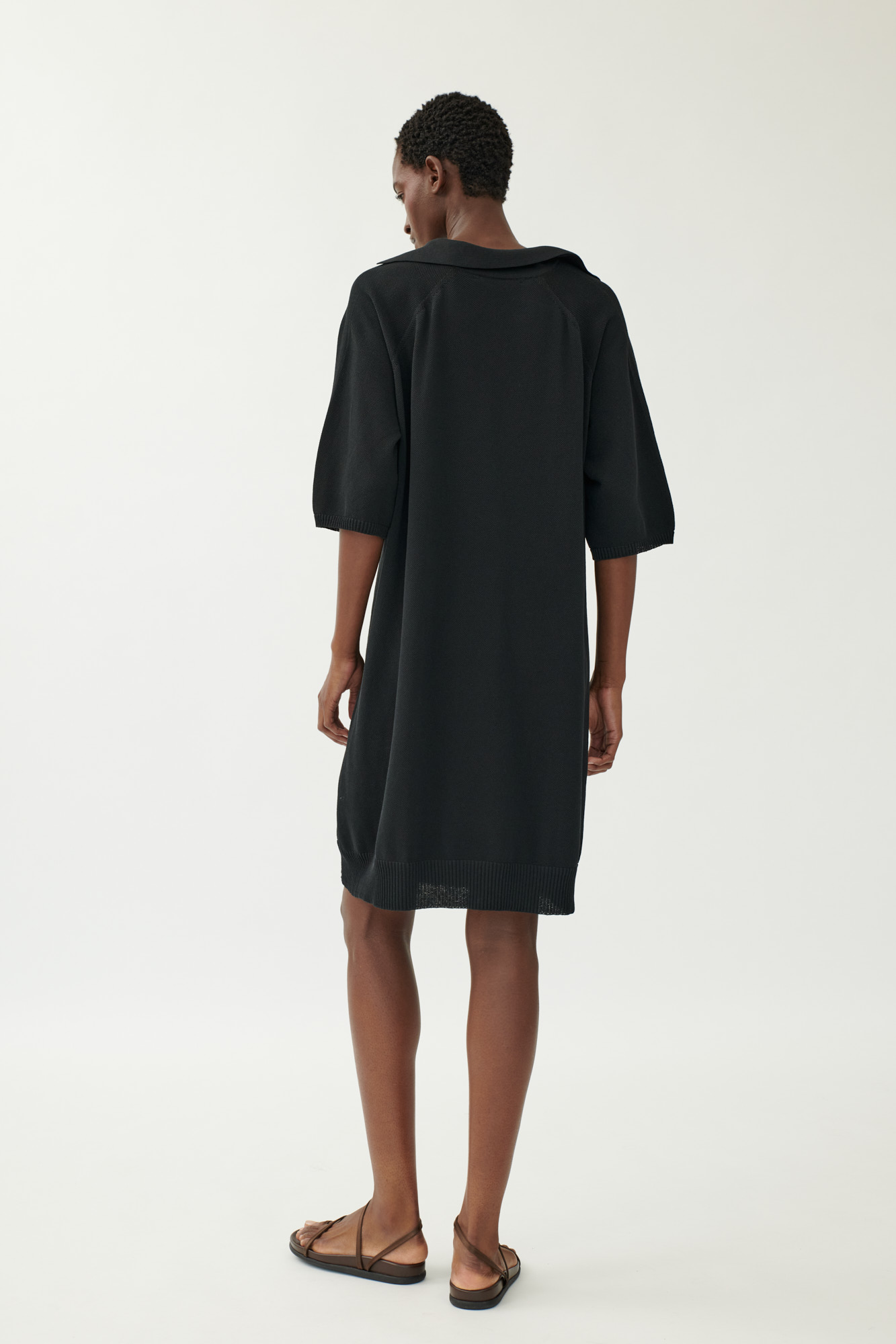 Baumwollkleid mit Piqué-Strick und Polokragen