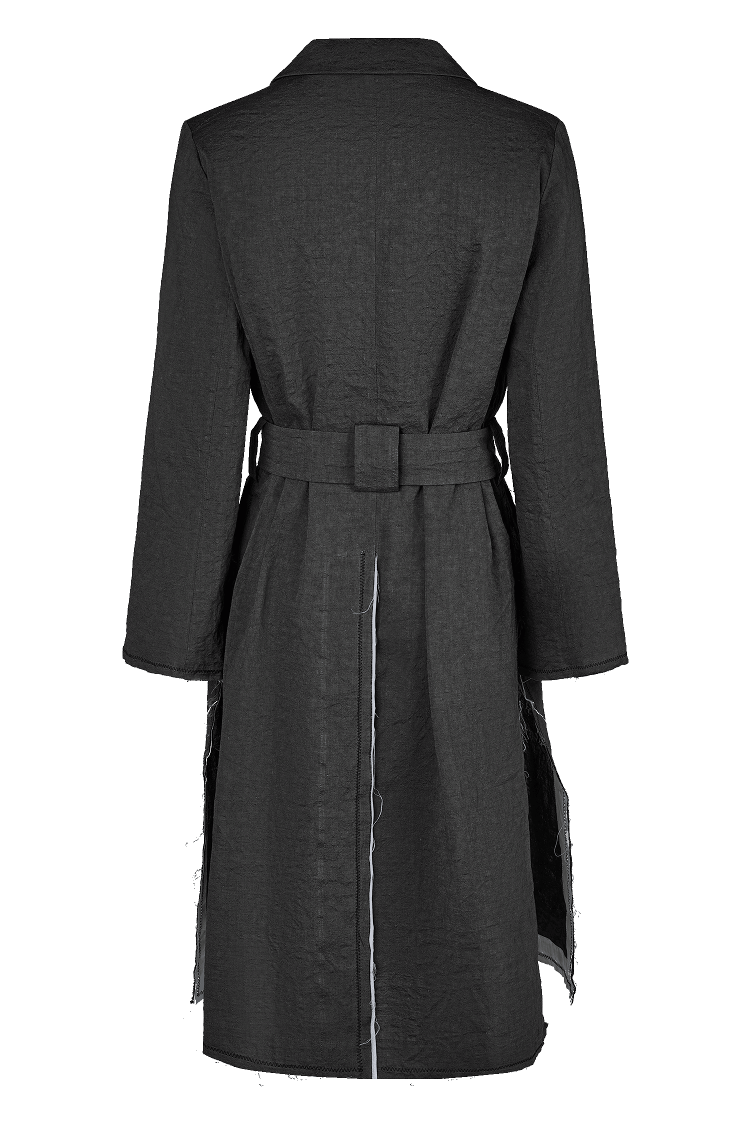 Dieser gerade geschnittene Mantel kombiniert reduzierte Formensprache mit subtilen Handwerkszitaten. Offenkantige Abschlüsse mit kontrastierendem Besatz, ausgestellte Ärmel und Zick-Zack-Steppungen betonen den handwerklichen Anspruch und verleihen dem Modell eine besondere Struktur. Das gewaschene Leinen-Baumwoll-Gewebe sorgt für angenehme Haptik und eine lebendige Oberfläche.