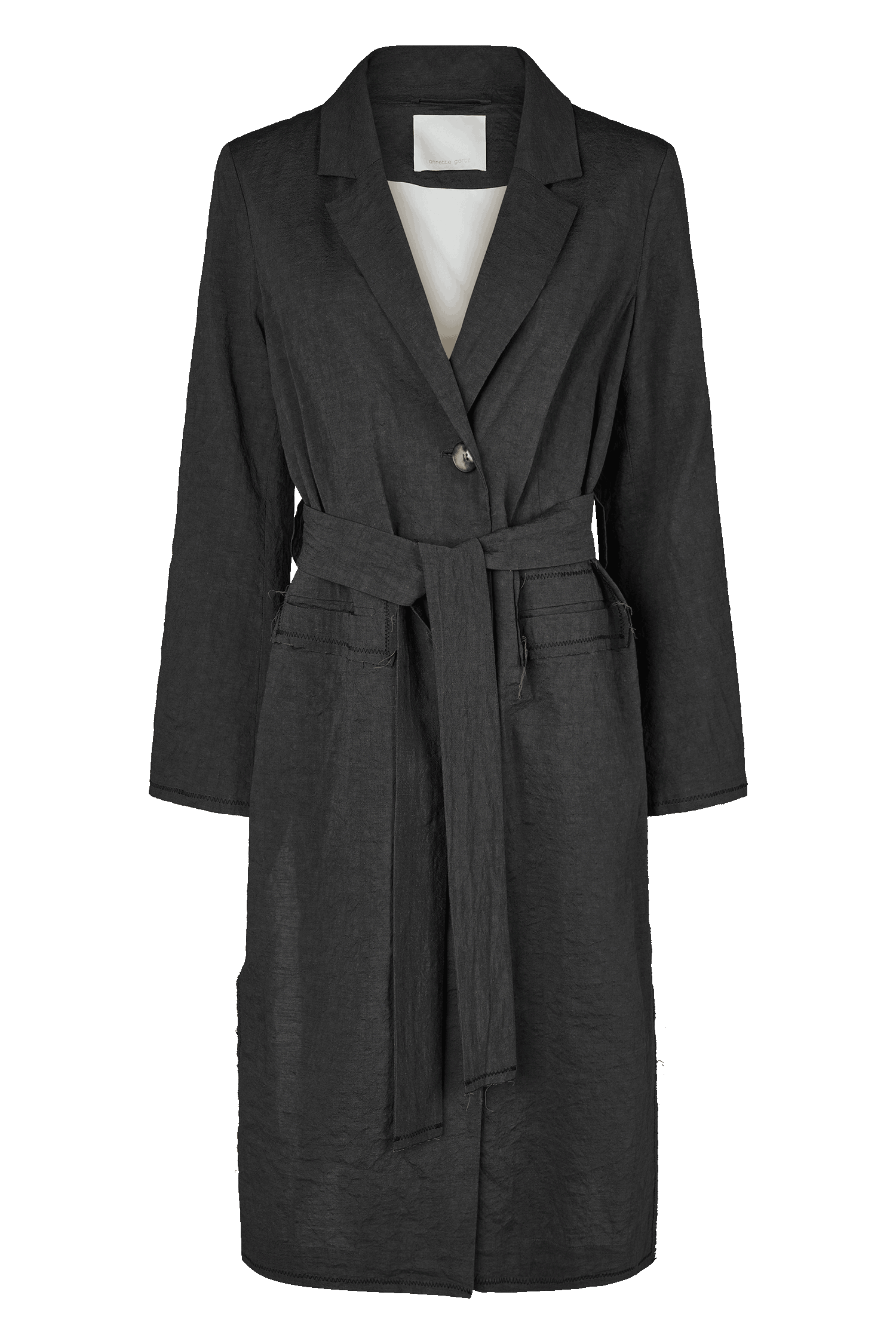 Lässiger Mantel aus gewaschenem Leinenmix mit kontrastfarbenen Details
