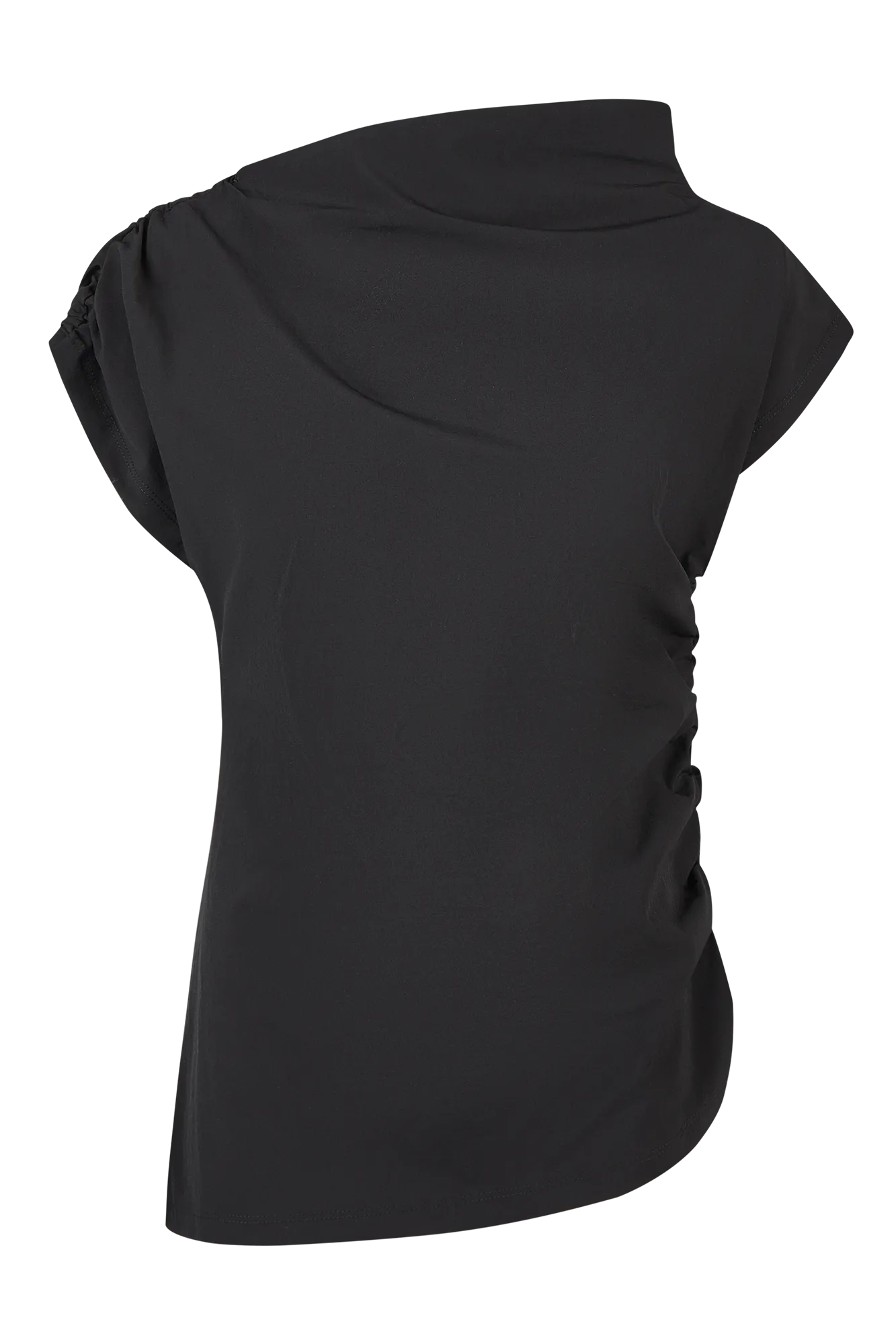 Sportlich und dennoch raffiniert: Dieses schmal geschnittene T-Shirt besticht durch seine asymmetrische Linienführung. Tunnelzüge an Schulter und Seitennaht ermöglichen individuelle Drapierungen. Das leichte Funktionsmaterial mit Elastizität sorgt für hohen Tragekomfort.