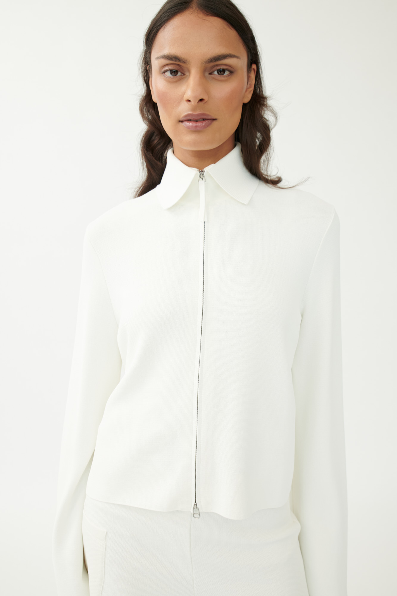 Minimalistisch, sportlich und vielseitig kombinierbar: Diese kurze Strickjacke aus hochwertigem Viskosegarn besticht durch ihre kompakte Milano-Optik und klare Form. Der 2-Wege-Reißverschluss sorgt für Flexibilität, während der hohe Stehkragen und die dezente Reißverschlusstasche am Rücken moderne Akzente setzen.