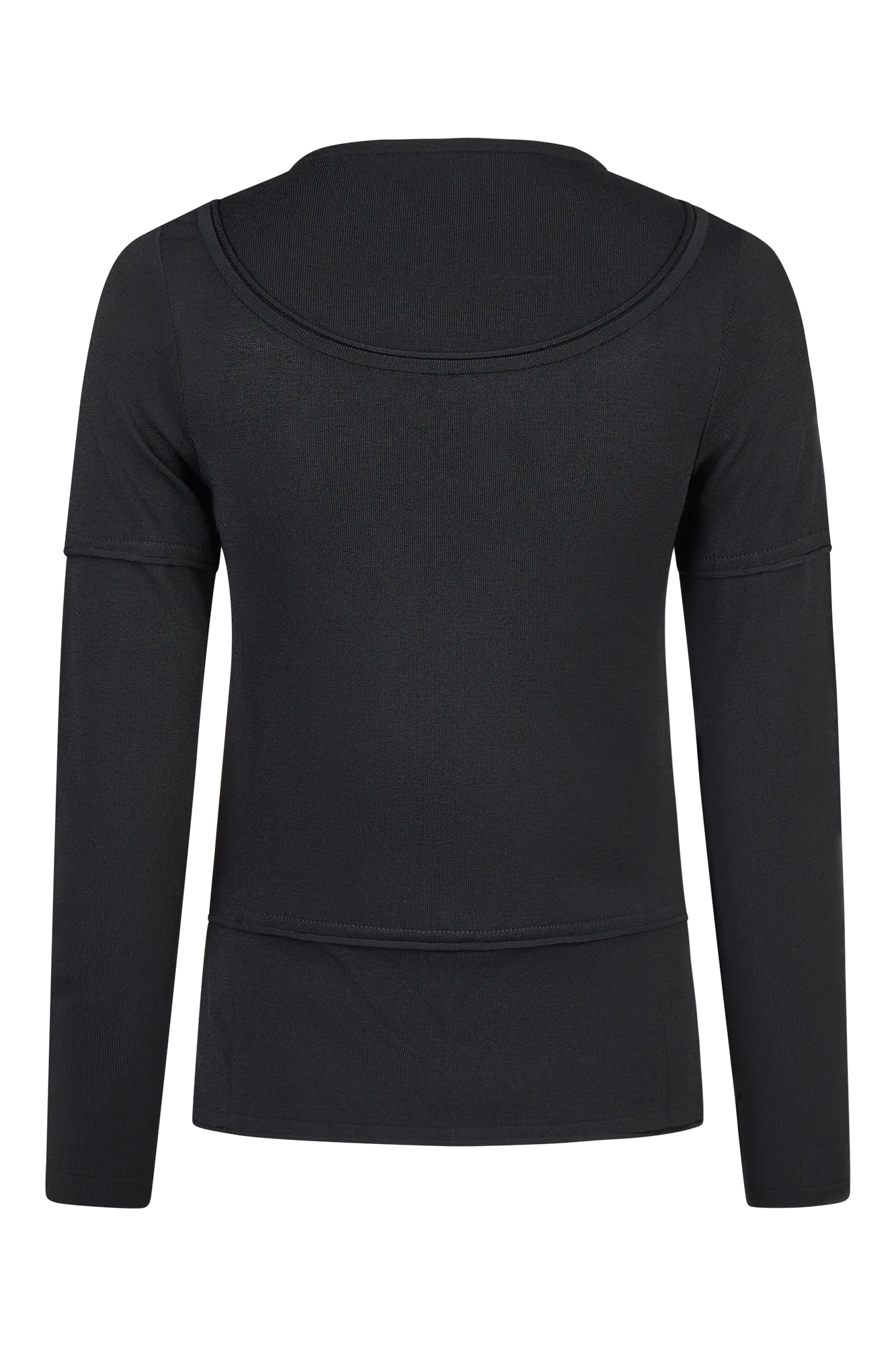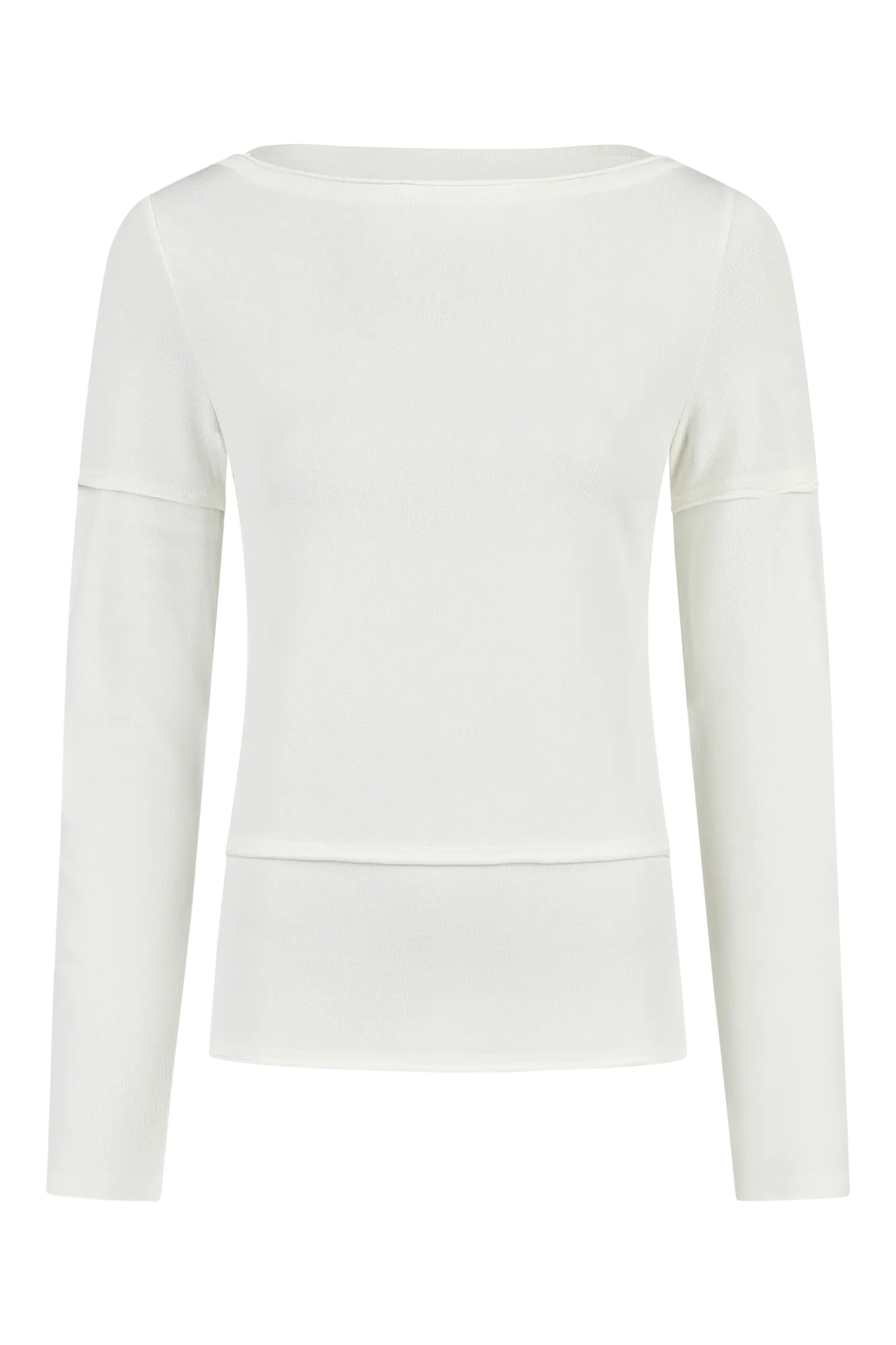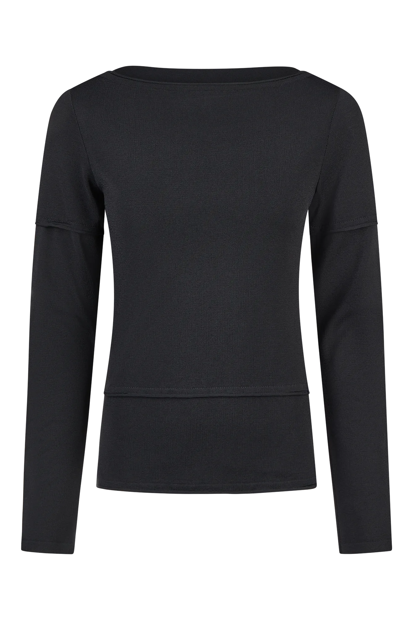 Dieser schmal geschnittene Pullover überzeugt durch seine feine Qualität und das cleane Design. Der breite Ausschnitt und die langen, schmalen Ärmel unterstreichen die elegante Silhouette. Rollkanten und die doppellagige Optik verleihen dem Look subtile Tiefe. Das kühlende Viskosegarn sorgt für ein angenehmes Tragegefühl – ideal auch für wärmere Tage.