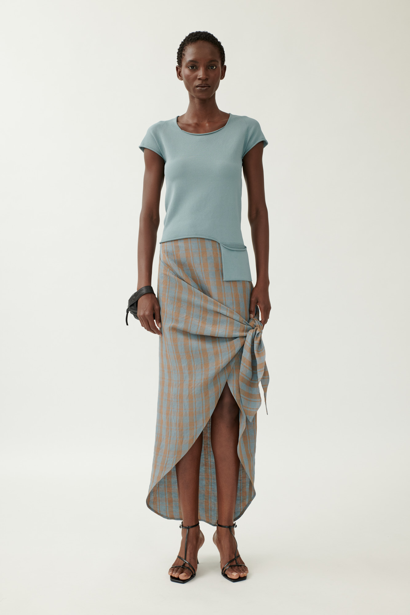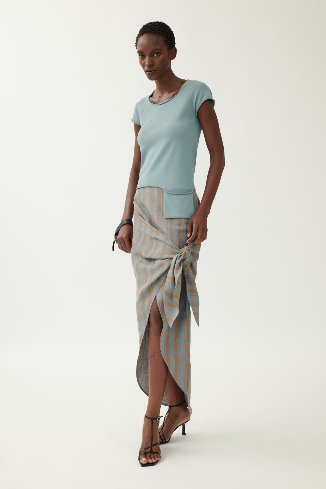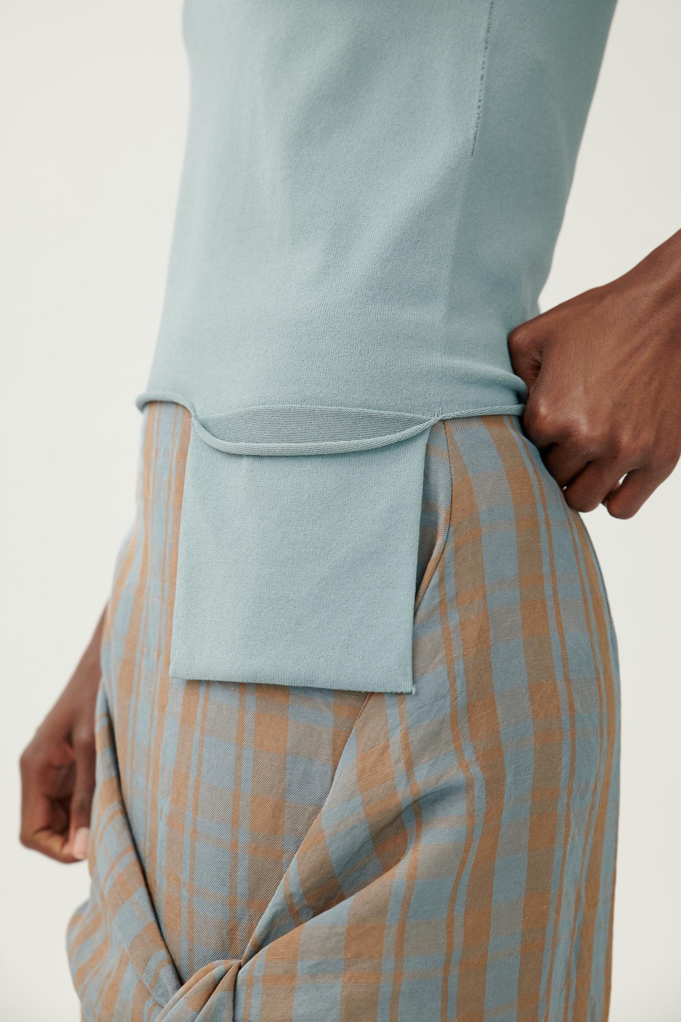 Schmales Strick-T-Shirt aus kühlender Viskose mit Taschen-Detail
