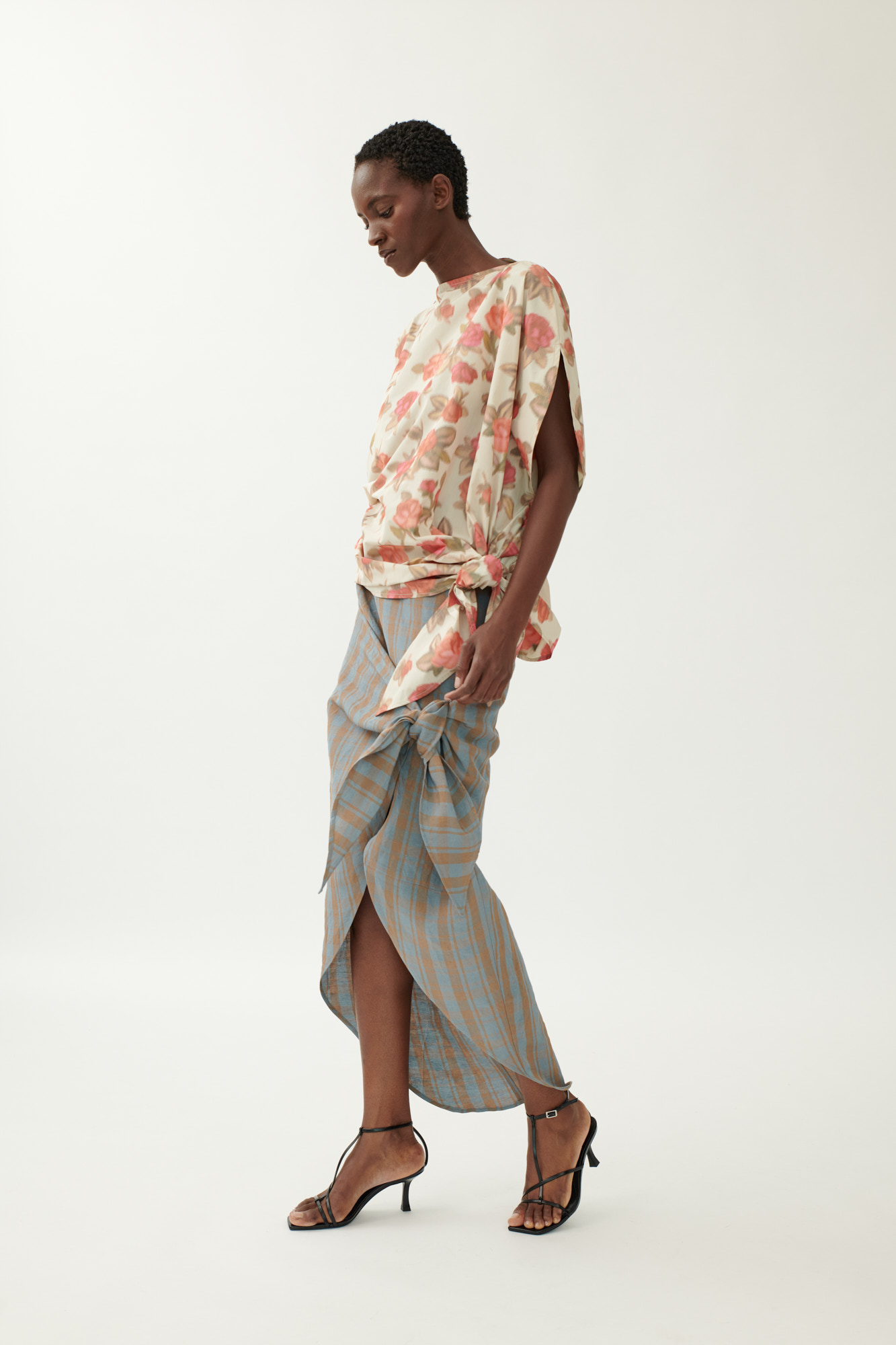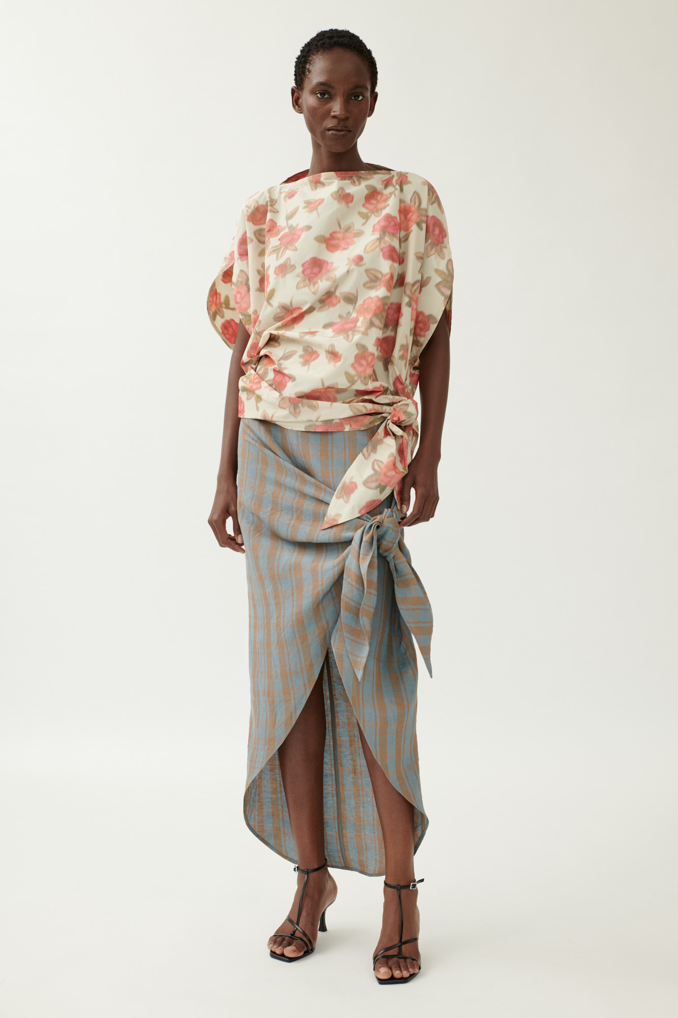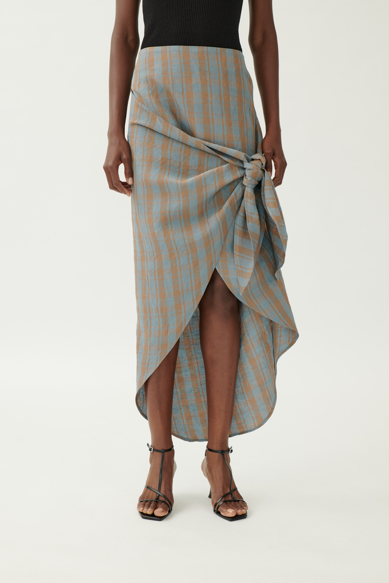 Geknoteter Rock aus gewaschenem Leinen-Viskose-Karo Schmal geschnittener Rock mit geknotetem... mehr