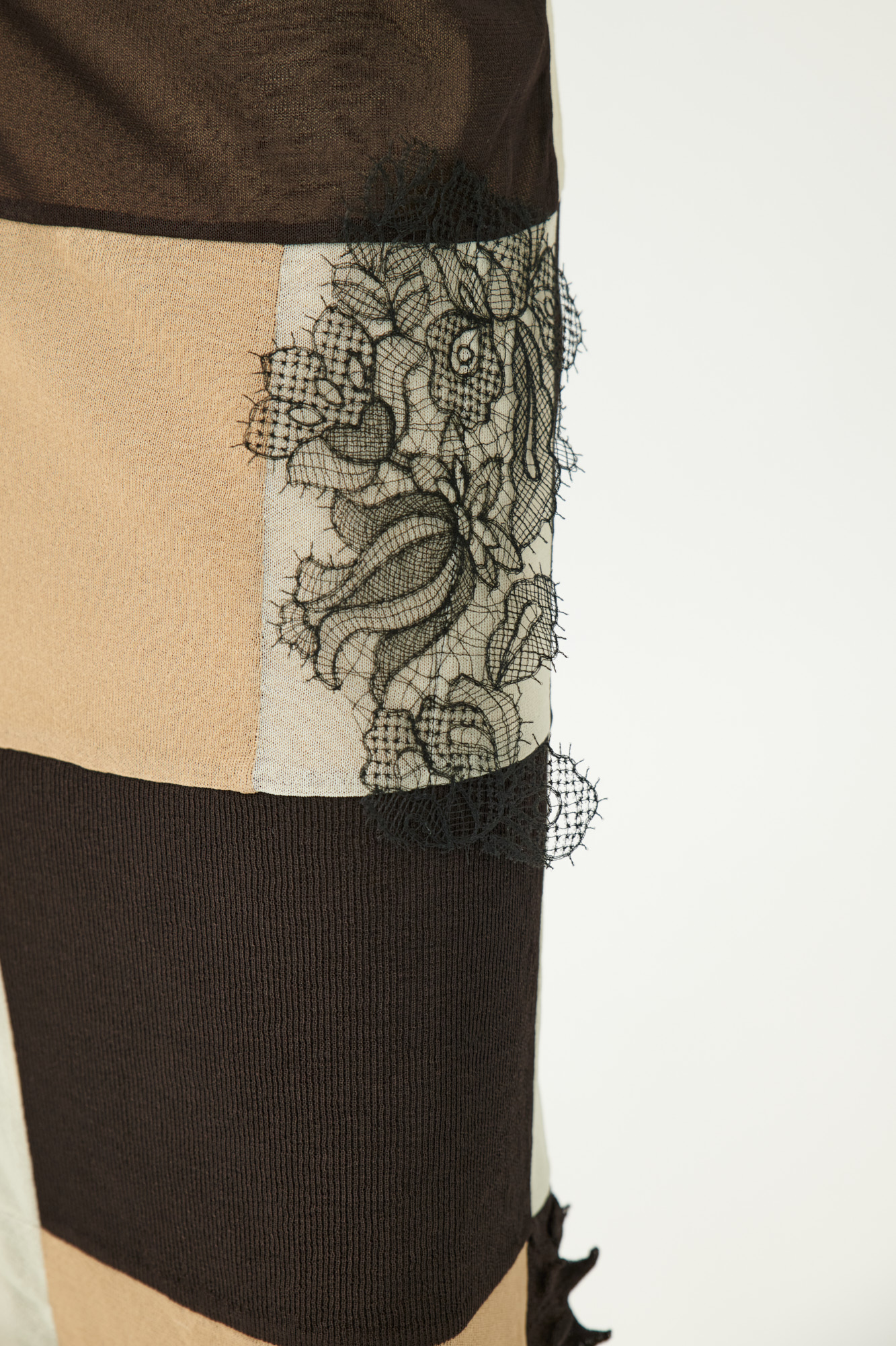 Patchwork-Rock aus Strickmuster-Kombination mit Spitzendetails