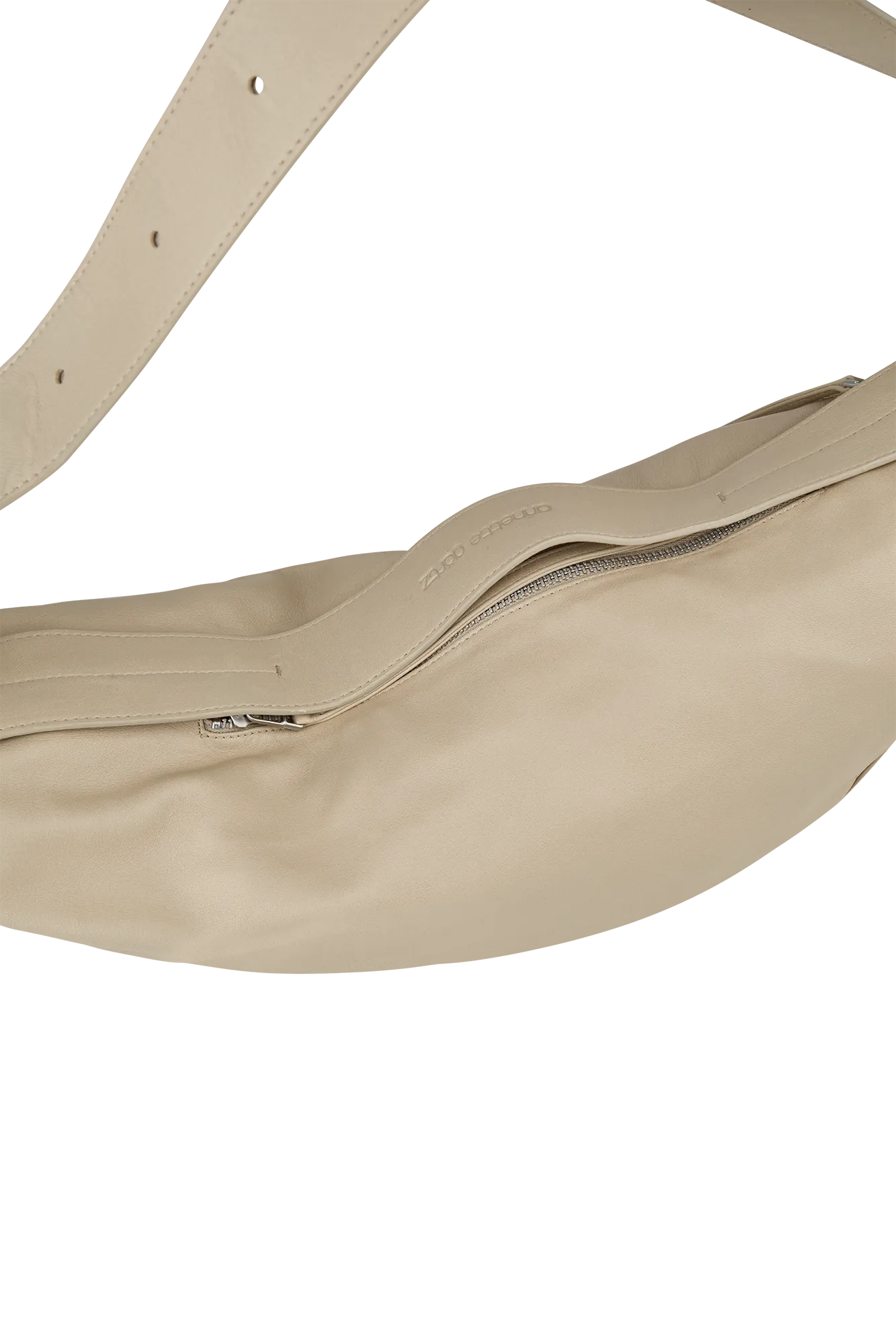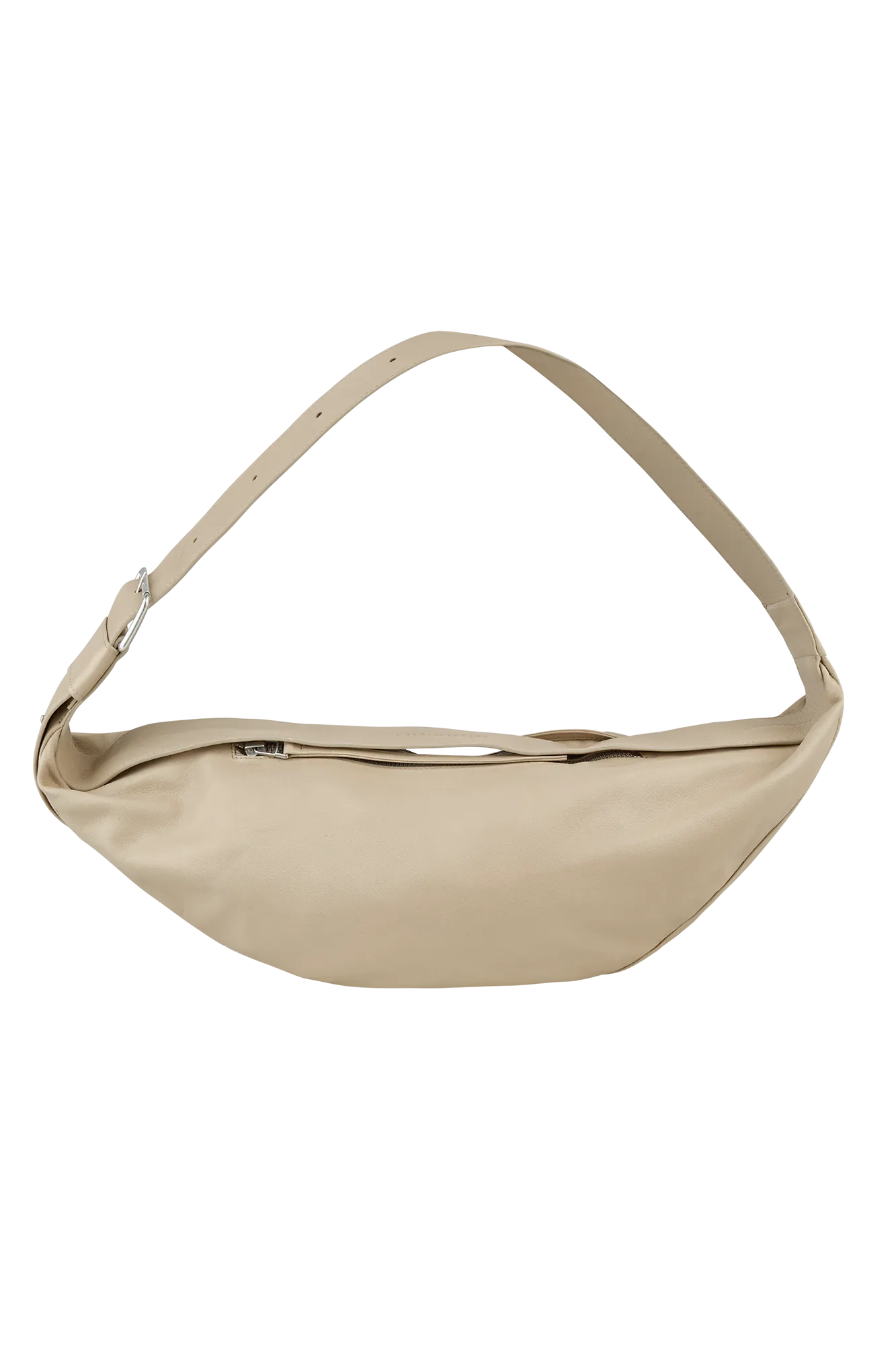 Unsere runde Crossbody-Tasche schmiegt sich angenehm an den Körper an. Ein Hauptfach und ein kleineres Innenfach bieten Platz für das Wesentliche. Der verstellbare Riemen mit Dornschließe sorgt für individuelle Tragelängen. Das weiche Lammleder mit mattem Finish verleiht der Tasche eine natürliche, hochwertige Haptik.