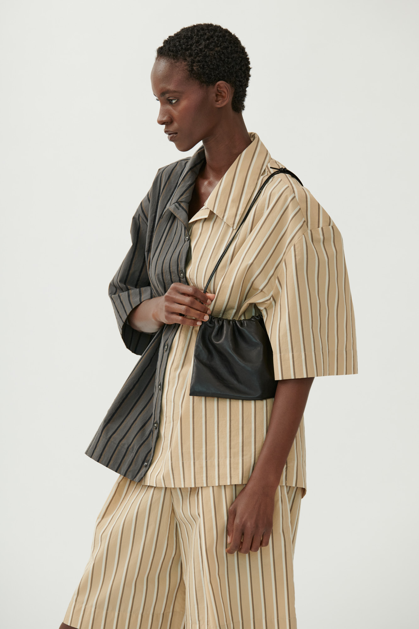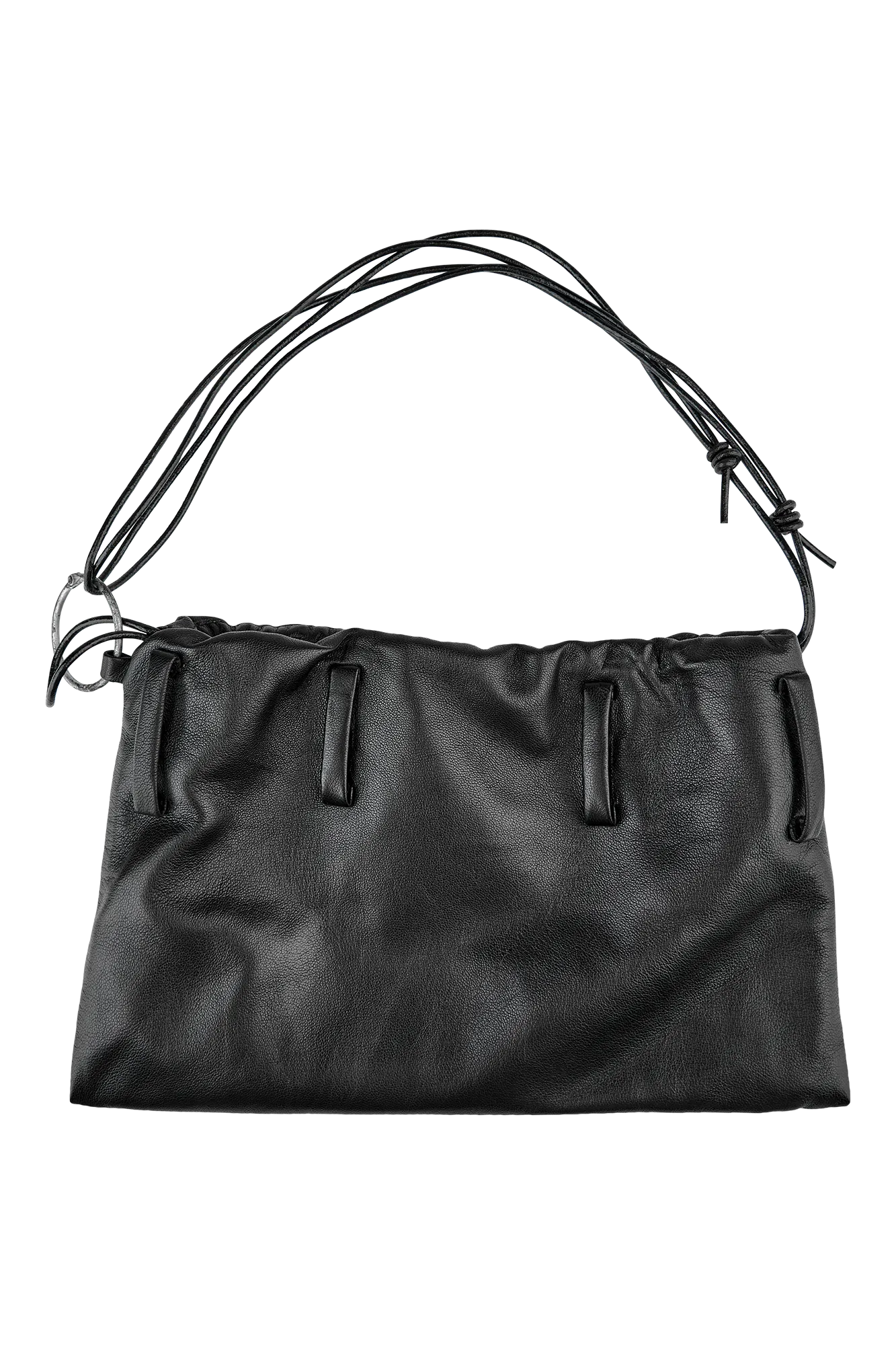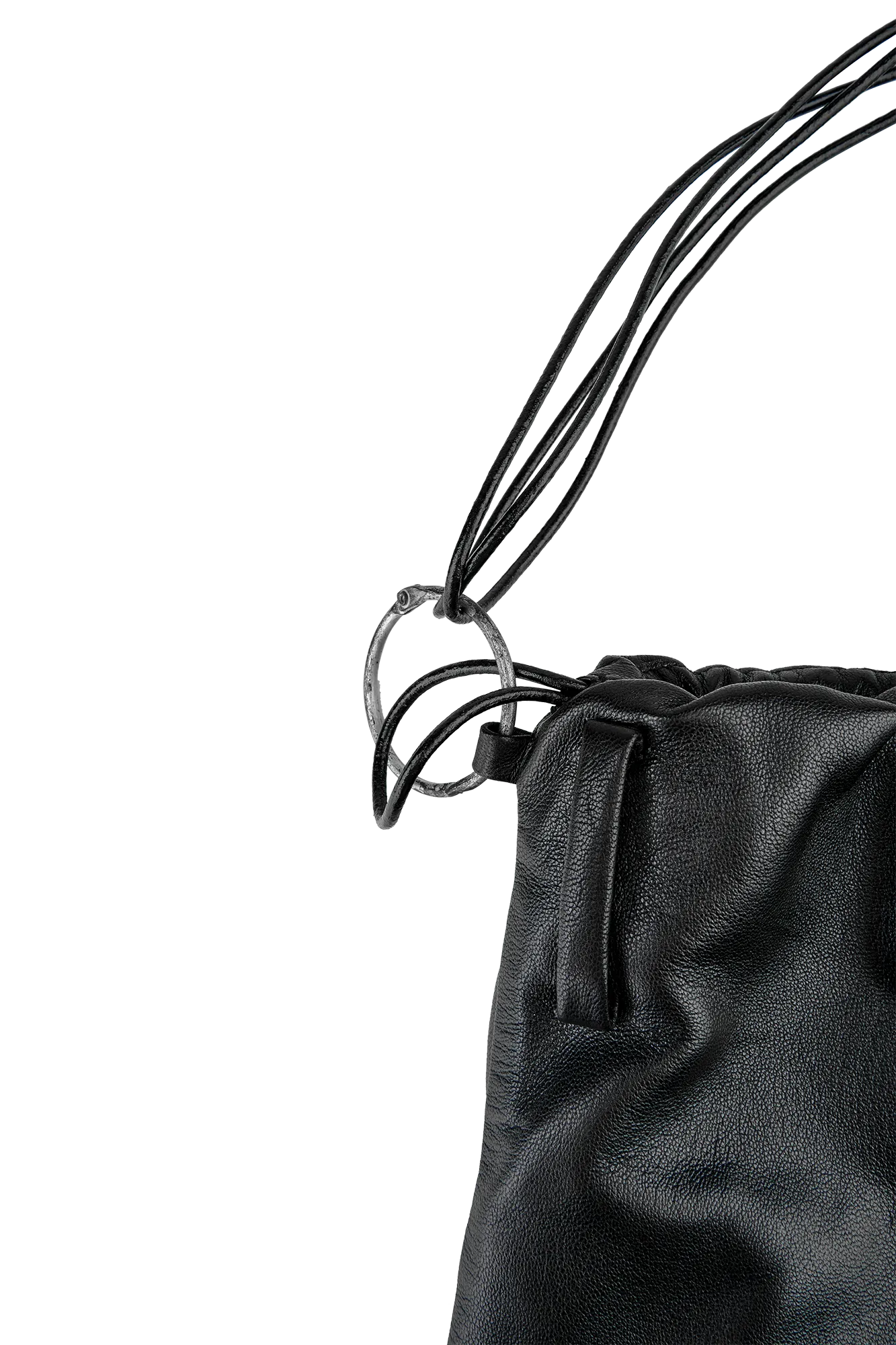 Weich, minimalistisch, wandelbar. Unsere kleine Tasche ist ein moderner Begleiter mit raffiniertem Design. Der weich geraffte Beutel mit feinen Lederkordeln schließt elegant um einen Metallring. Durch die rückseitigen Schlaufen lässt sich die Tasche auch als Belt Bag stylen – perfekt für unterschiedlichste Looks und Anlässe.