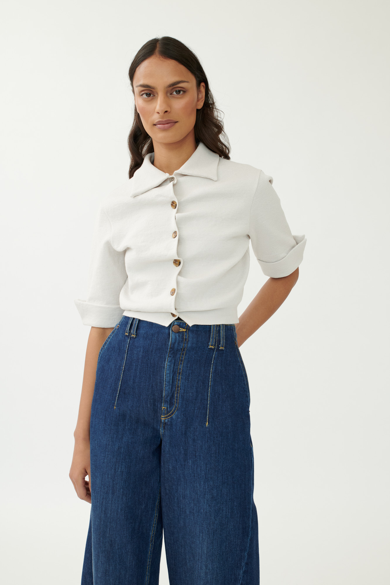 • Kurze Silhouette mit schmalem Rippensaum auf Hüfthöhe